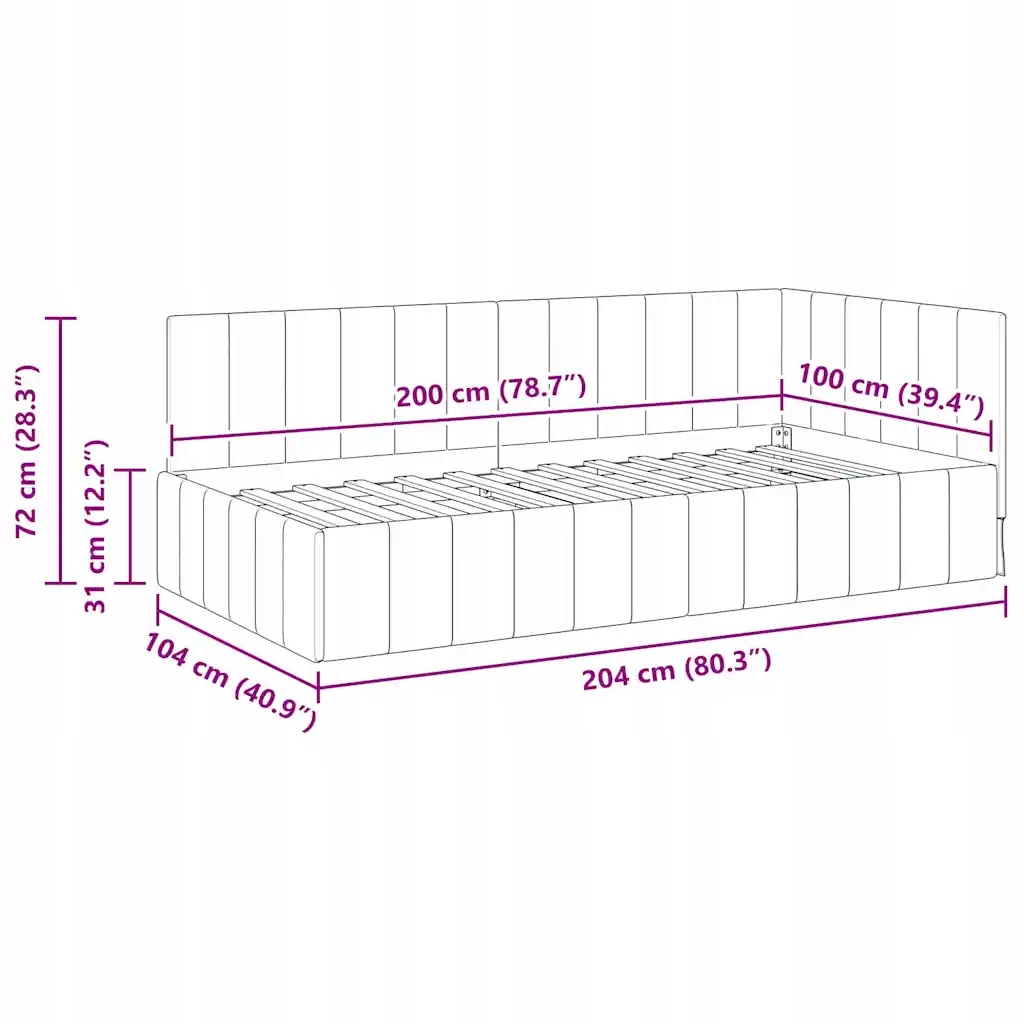 - Общие размеры: 104 x 204 x 72 см (ширина x Матрасы: широкий односпальный кровать