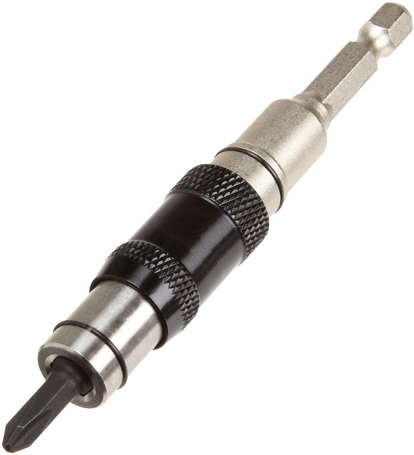 Правый адаптер бит. угол до 20 градусов, что позволяет получить доступ в труднодоступные места. Адаптер полностью изготовлен из стали и является магнитным. Когда мы хотим использовать его прямо, мы блокируем черную металлическую защелку, чтобы адаптер не развалился при вкручивании винтов.