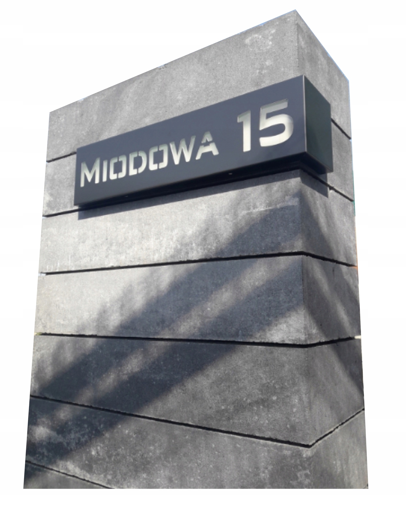 Адресная доска крепится к стойке. Столб забора или угловой фасад здания, забор из габиона (крепление габионом, дополнительная опция)