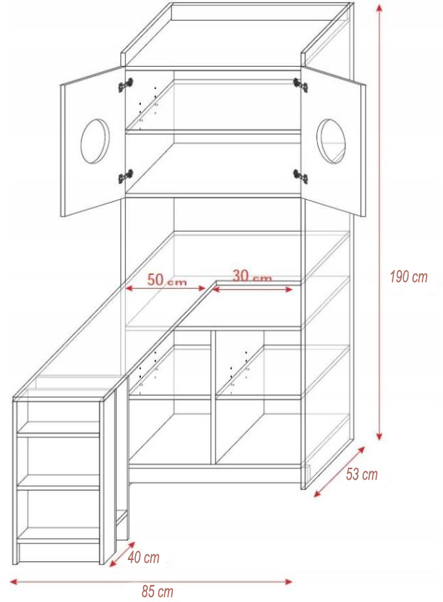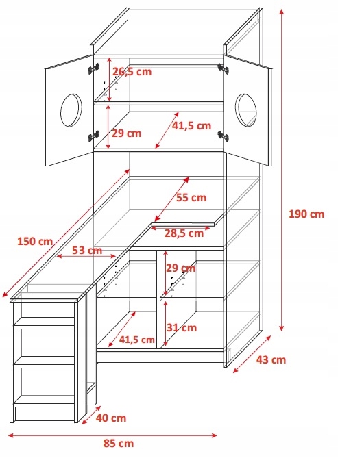 общая высота: 190 см (стол высота 75 см)