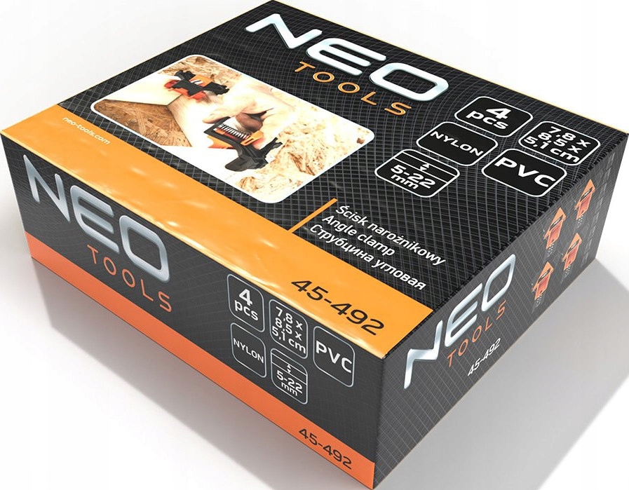 УГЛОВОЙ ЗАЖИМ, УГЛОВОЙ, КОМПЛЕКТ ИЗ 4 ПРЕДМЕТОВ NEO Tools 45-492