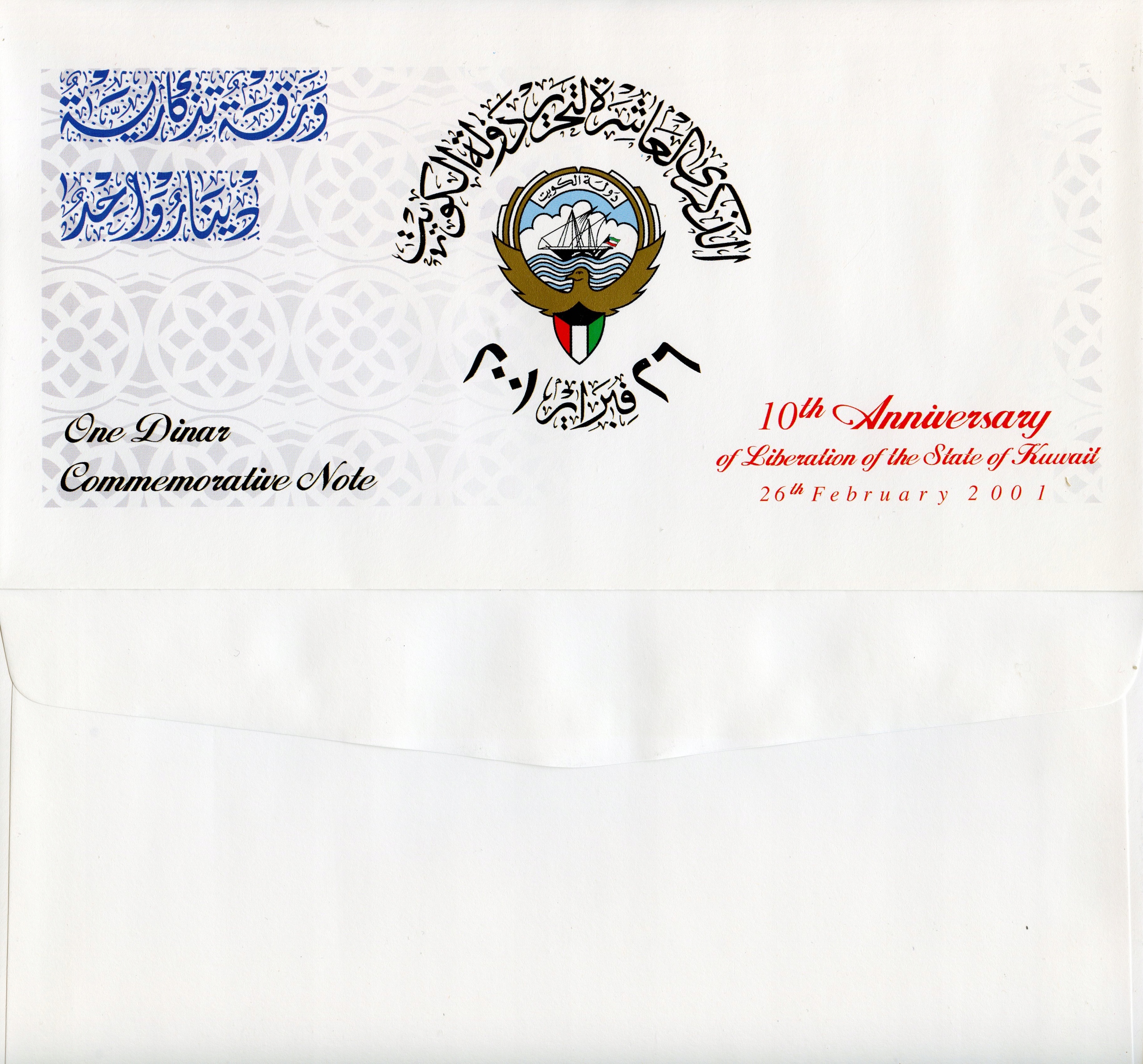 Kuwait 1 Dinar 2001 02.26 P-CS2 UNC Polmer + папка + конверт