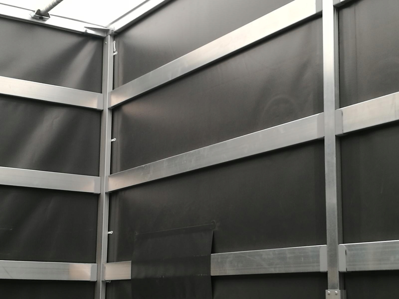 Промежуточная рама из высокопрочной стали, подвергаемой горячему окунанию. оцинкованные, анодированные алюминиевые пирамидальные профили, защищенная от коррозии рама, борта для крепления груза и алюминиевые крылья. Представленная на фото штора позволяет укрыть и защитить перевозимый груз. Кроме того, он прочный, удобный и простой в использовании.