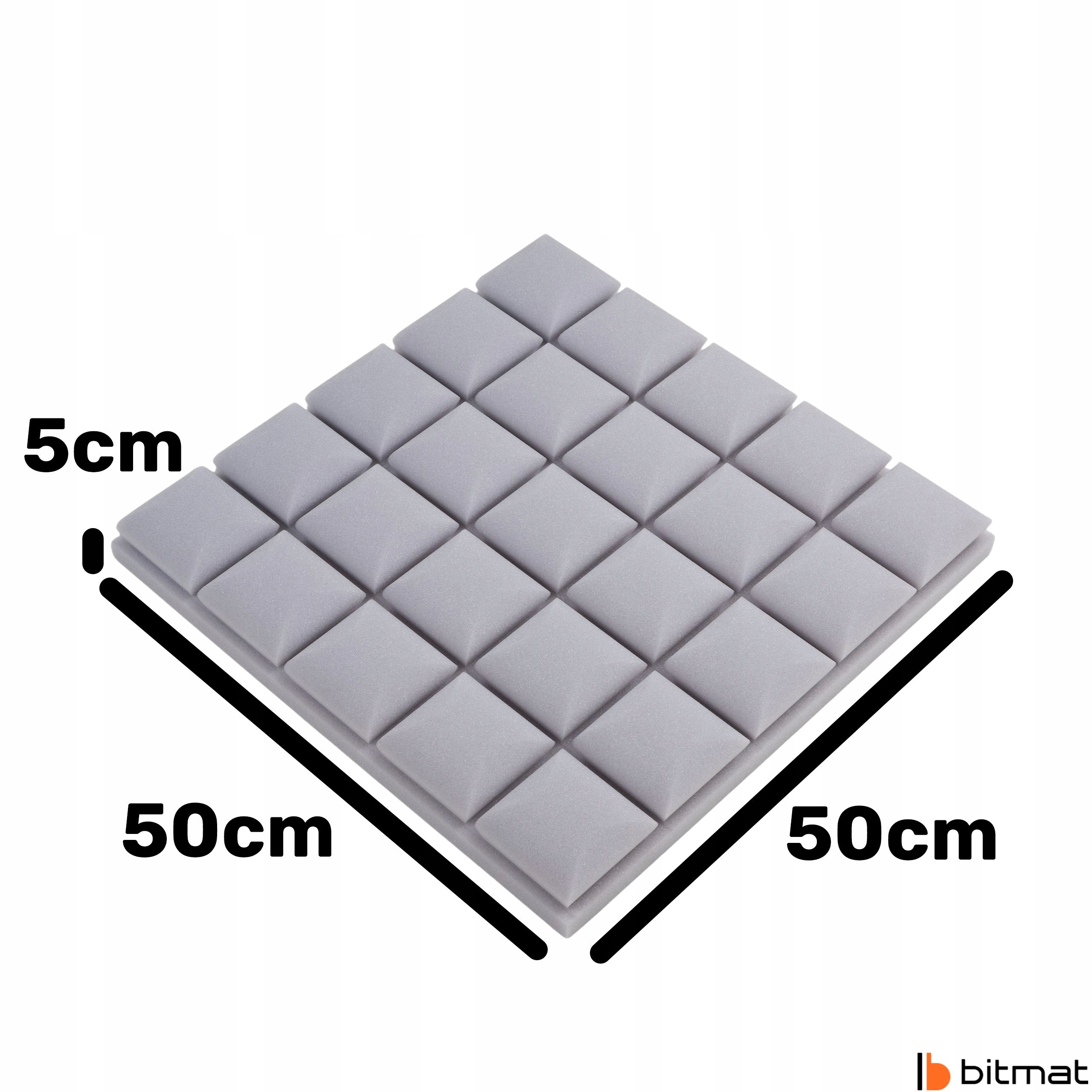 битматная акустическая пена в форме выносливого куба с размерами 50 × 50 × 5 см. Свето -серой цвет обеспечивает универсальность, гармонично вписывающуюся в любой интерьер - от игровых комнат до профессиональных записей