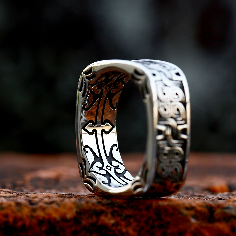 КВАДРАТНА СРІБНА ОБРУЧКА З ПРИКЛАДАМИ КІЛЬЦЕ НА ПЕЧАТКУ R22
