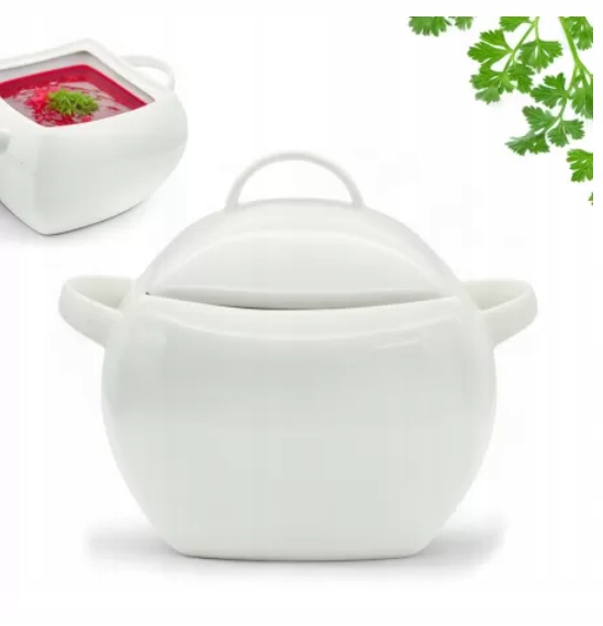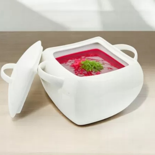 КВАДРАТНАЯ ВАЗА С КРЫШКОЙ 4,5 Л ДЛЯ БУЛОНА-СУПА, БЕЛЫЙ ФАРФОР