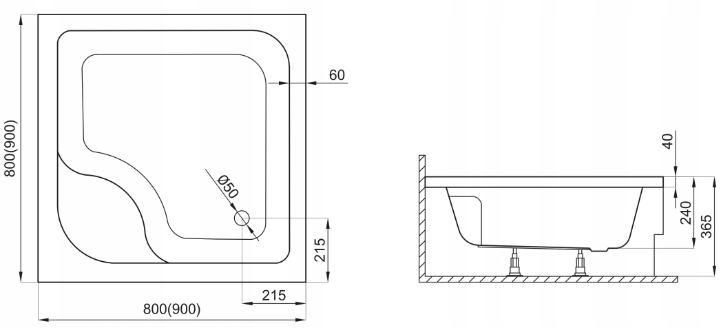 Душевой поддон глубокий квадратный TENOR 80x80 + корпус + сифон