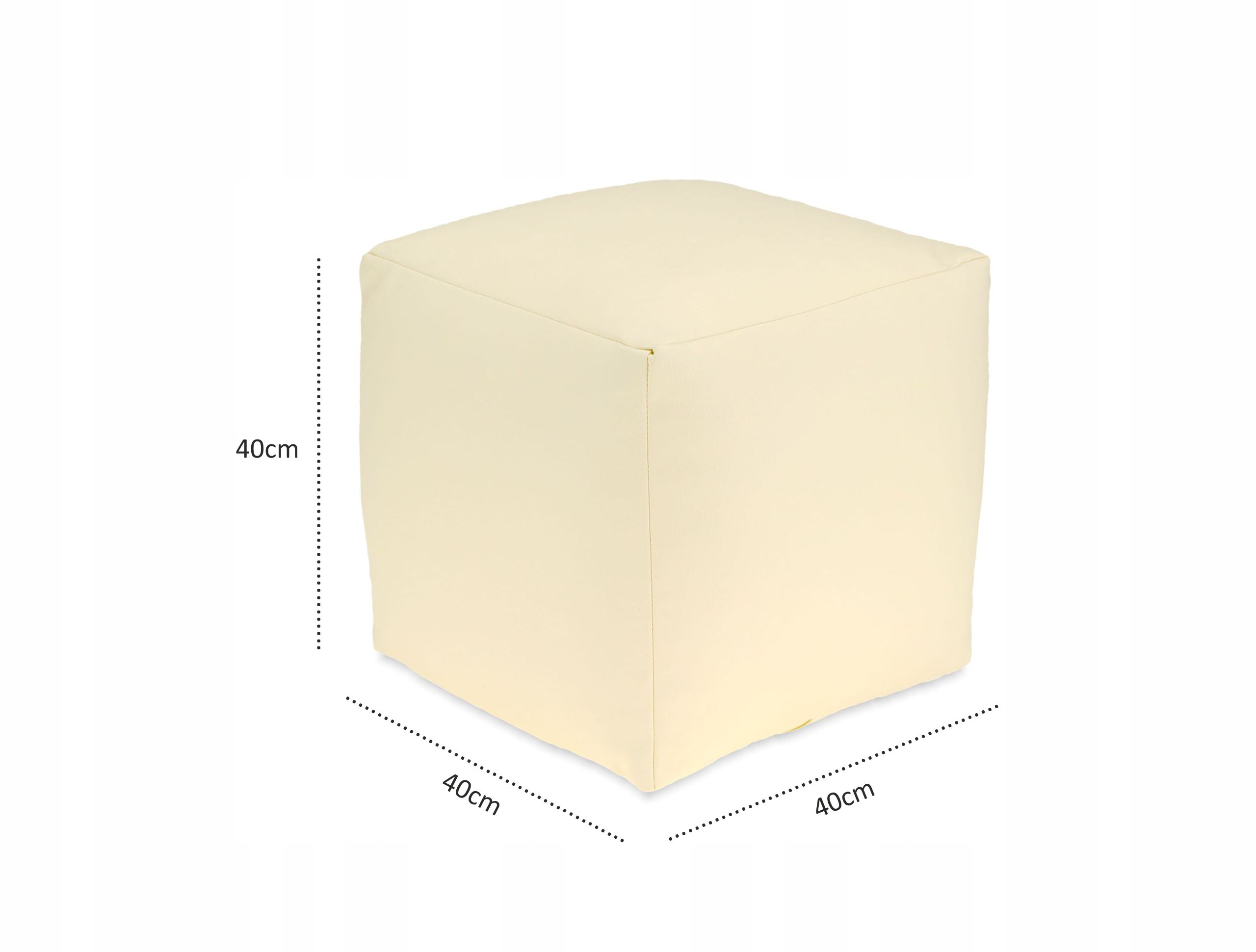 Предмет аукциона — пуф-куб квадратной формы со сторонами 40 см. Вы можете свободно выбирать цветовую версию при покупке, выбирая цветовые версии из образца или цветовой палитры, имеющихся на аукционе. Инструкция по выбору цвета описана в тексте ниже. Куб представляет собой бескаркасный предмет мебели, поэтому его размеры могут меняться в зависимости от веса пользователя, расположения пуфа или выбора наполнение. Пуф стандартно наполнен смесью гибких материалов для мебельного производства, обеспечивающих долговечность и комфорт использования. Кубик изготовлен из эко-кожи Dollaro, сертифицированной Польским национальным институтом гигиены (PZH).
