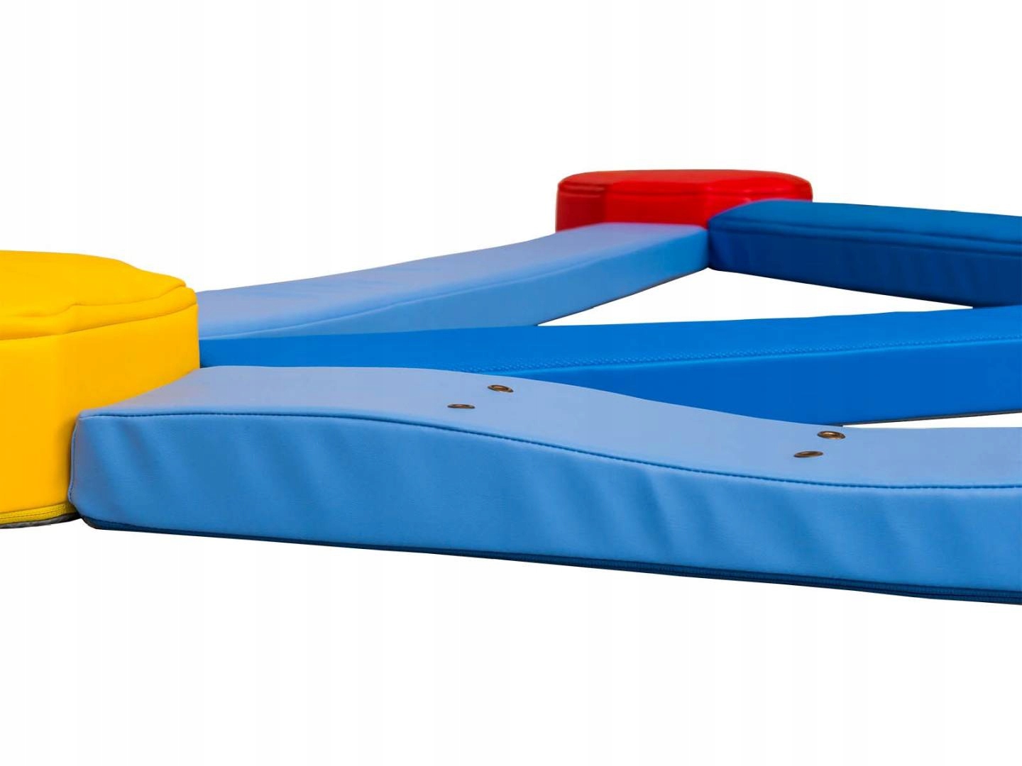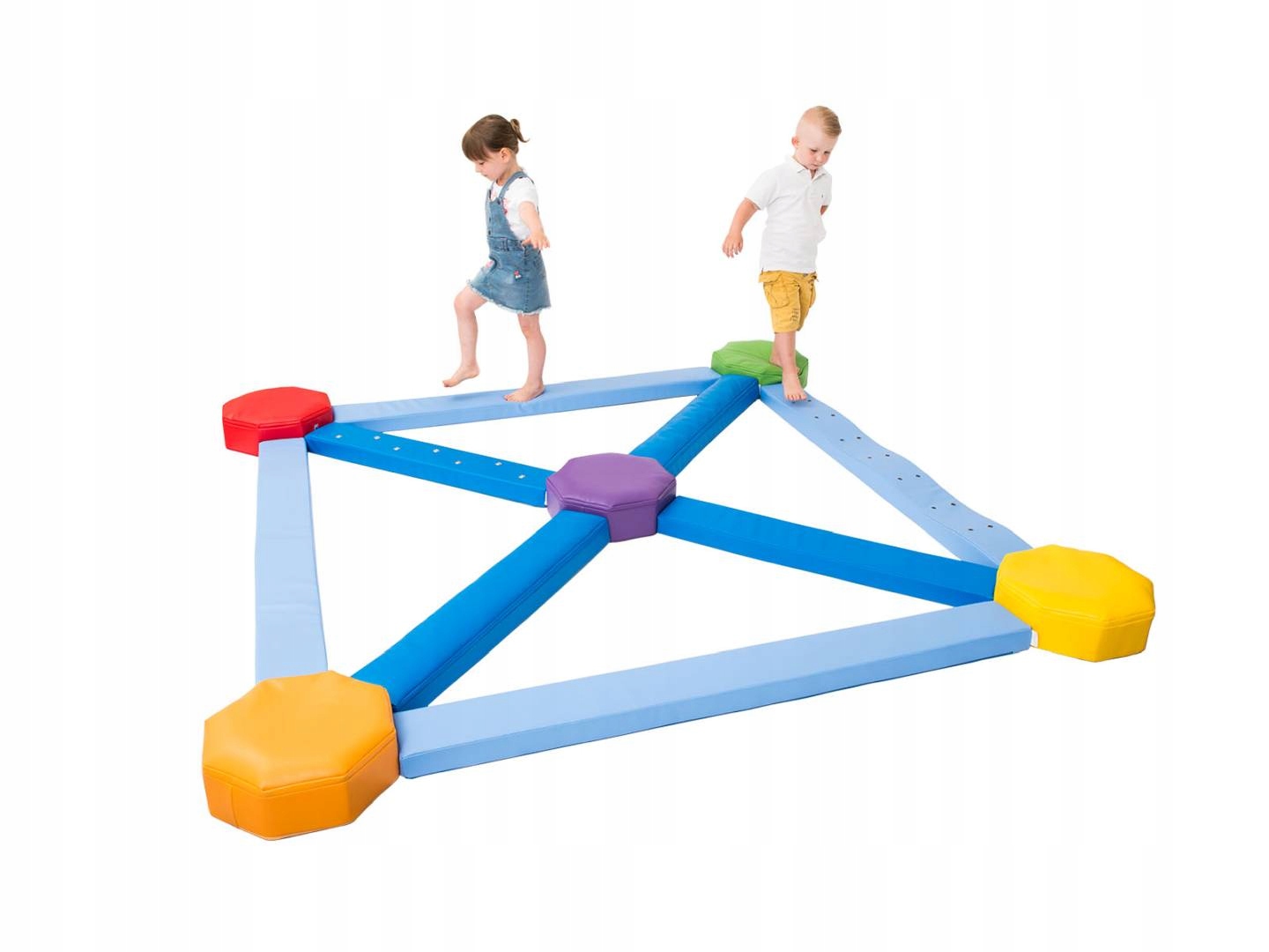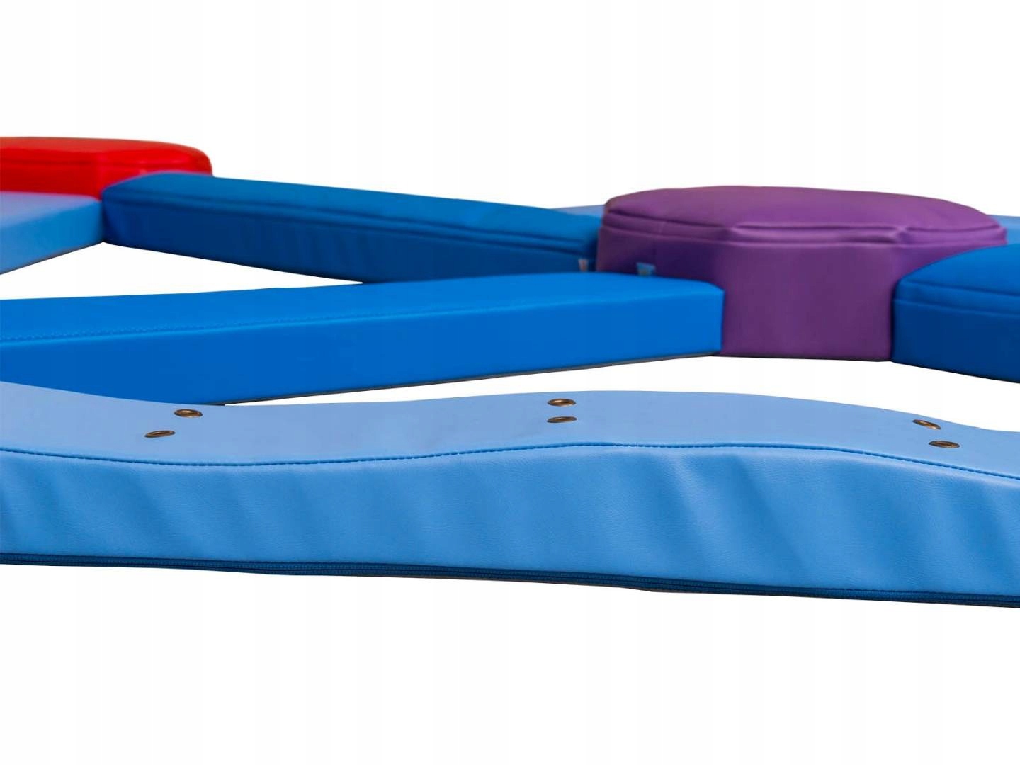Набор предназначен для поддержки развития чувства равновесия, осязания, а также стимуляции зрения и слуха. В наборе 13 элементов, различающихся текстурой, наполнителем и степенью жесткости пены. Полный комплекс образует квадрат с отдельными мостами, соединенными восьмиугольными платформами ярких цветов. Элементы можно комбинировать любым способом. Покрытие элементов искусственной кожей позволяет легко содержать их в чистоте, а нескользящая поверхность делает конструкцию устойчивой. В комплект входят: - Волновой мостик - Волновой мост с петельками - Жесткий мост - Мягкий мост - Мостик с силиконовым наполнением - Мостик с металлическими петельками - Мостик с гранулами - Мостик с противоскользящим покрытием - Платформа, наполненная пшеницей - Платформа, наполненная рапсом - Платформа с рисом - Платформа с горошком - Платформа с гречкой. Произношение комплект: длина 223 см, ширина 223, высота 10 см