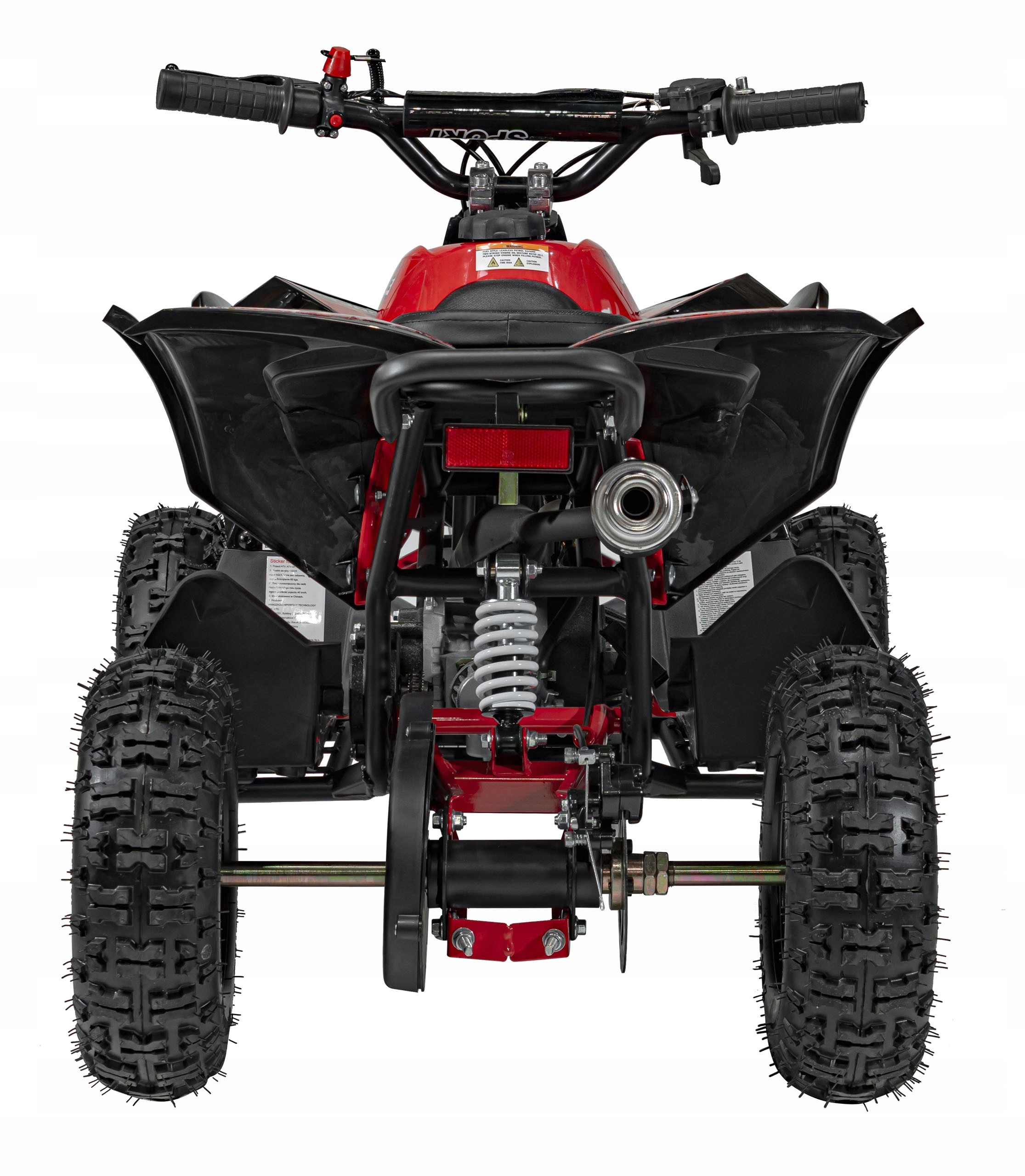 В автомобиле установлен одноцилиндровый двухтактный двигатель, который обеспечивает мощность и динамику и дает ребенку полную свободу на дороге. Для обеспечения комфорта и устойчивости движения квадроцикл оснащен надувными шинами с толстым протектором, которые поглощают удары и обеспечивают уверенность на различных покрытиях. Амортизаторы также обеспечивают поддержку, обеспечивая плавную и комфортную езду. Дисковые тормоза гарантируют быстрый и эффективный контроль скорости, гарантируя безопасную остановку в любой ситуации. Прочный каркас имеет порошковое покрытие, а мягкое сиденье, выполненное из прочного материала, обеспечит удобство и комфорт в течение долгих часов игры.