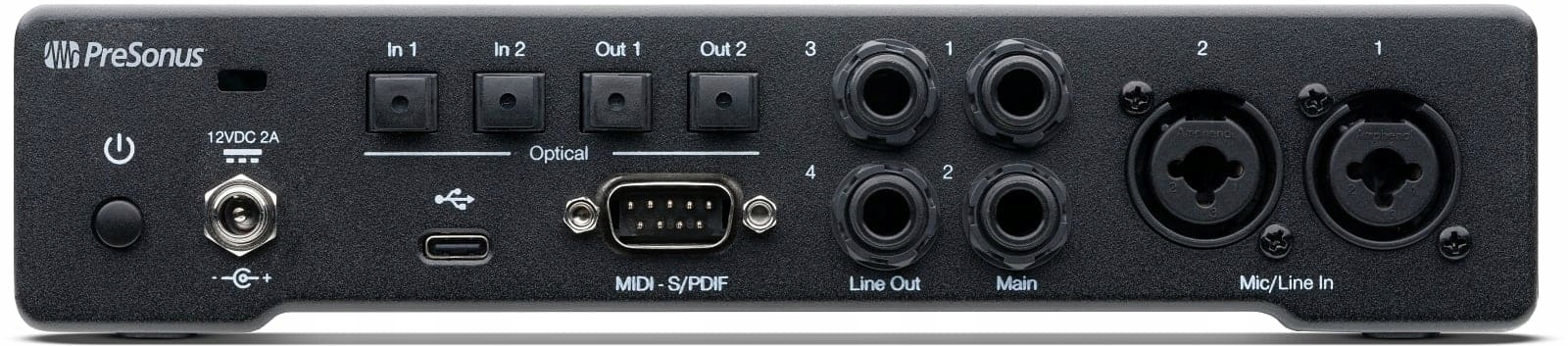- Преампы PreSonus MAX-HD™: обеспечивают чистый и реалистичный звук с усилением +75 дБ.