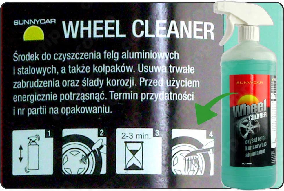 SUNYCAR Wheel Cleaner 1000 мл – средство для чистки алюминиевых и стальных дисков, а также колпаков. Растворяет дорожную смазку, пыль с тормозных колодок и летучую ржавчину, образующуюся при истирании тормозных дисков. Обладает консервирующими свойствами, не содержит кислот и имеет нейтральный pH.
