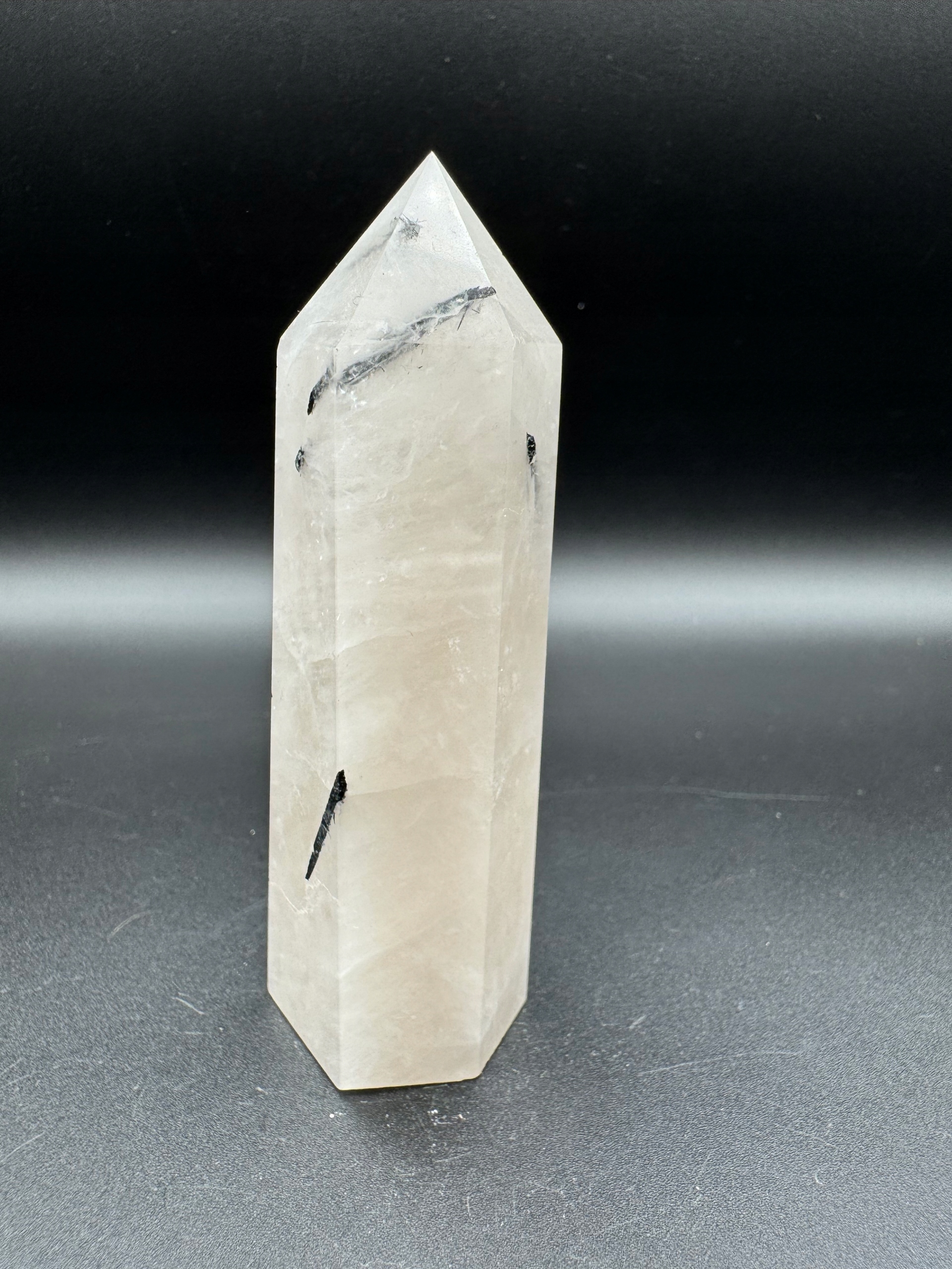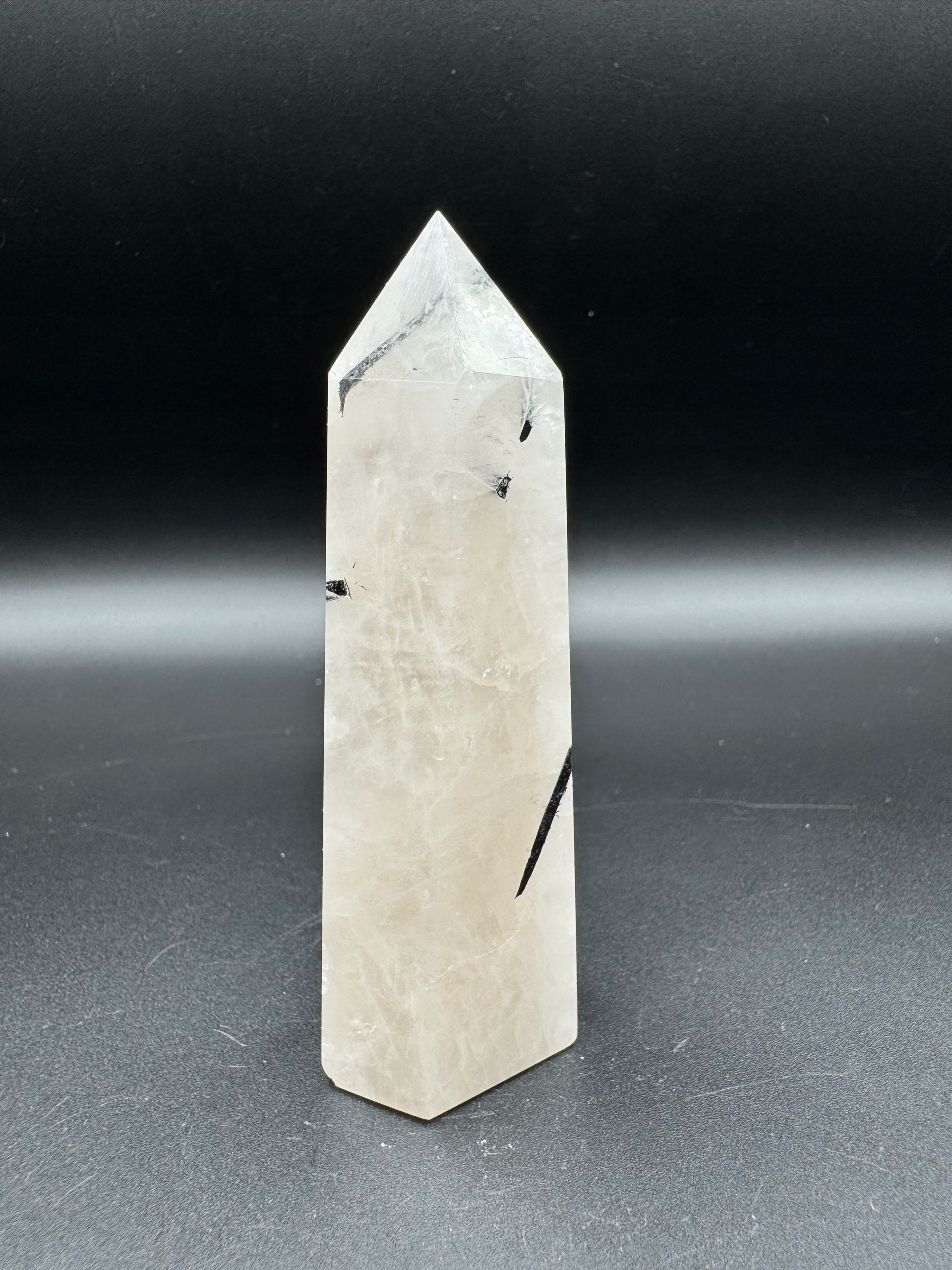 Кварцевая башня с турмалином, огранка, полировка, обелиск, минерал