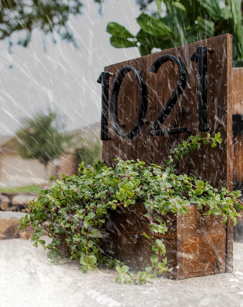 цифры из цинкового сплава и алюминия, защищенного порошковым лаком, устойчивым к погодным условиям. Используемые материалы высочайшего качества обеспечивают защиту в течение многих лет.