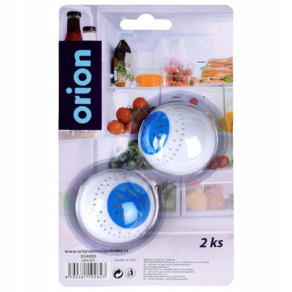 Набор из двух ароматов в форме шарика, которые можно поместить в холодильник. Простой в использовании и удобно использовать. Размещение их в холодильнике помогает поглощать неприятные запахи из различных пищевых продуктов, предотвращая проникновение и смешивание ароматов. Полезно в каждом доме позволит вам дольше сохранять свежесть пищи. Оригинальный продукт чешского бренда Orion. был произведен в соответствии с европейскими стандартами.