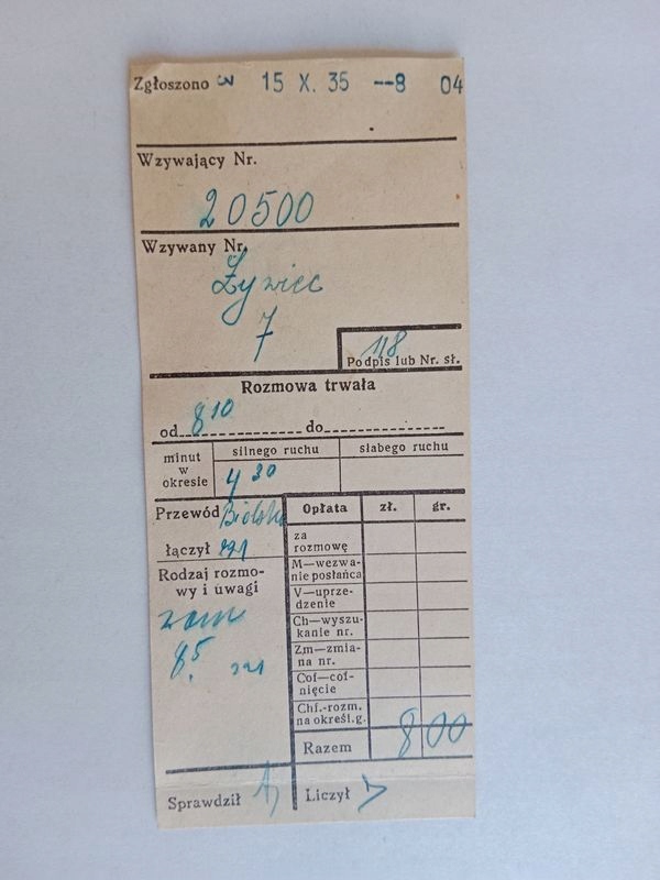 КВИТАЦІЯ ЗА ТЕЛЕФОННИЙ РОЗВІТ БІЛЬСЬКО 1935 1219 D1