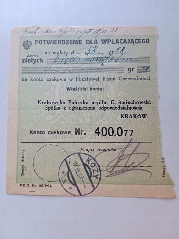 КВИТАНЦІЯ KRAKÓW KOZY 1933 R 1163 D1