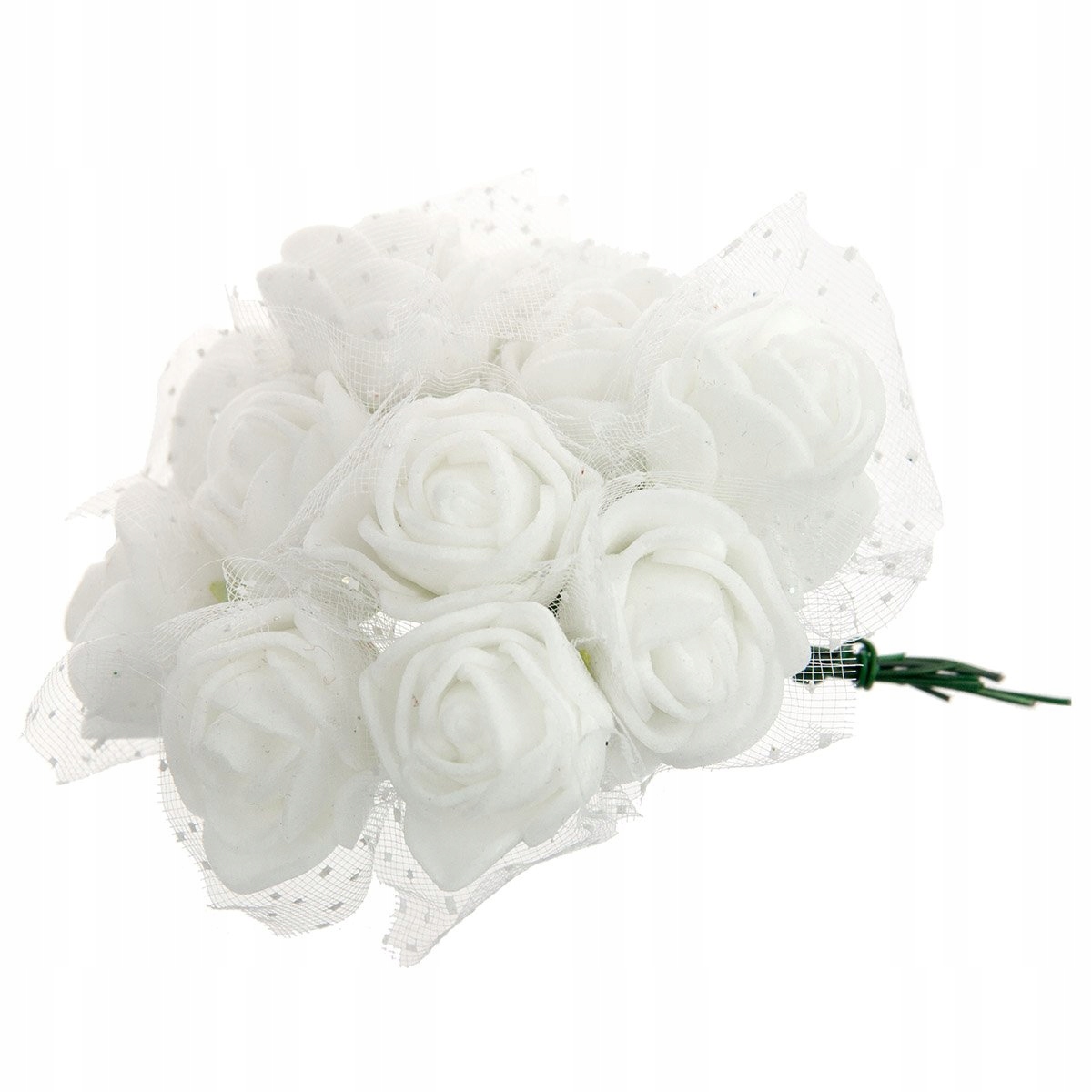 Цветы РОЗЫ, белые пенопластовые розы с тюлем, 12 шт