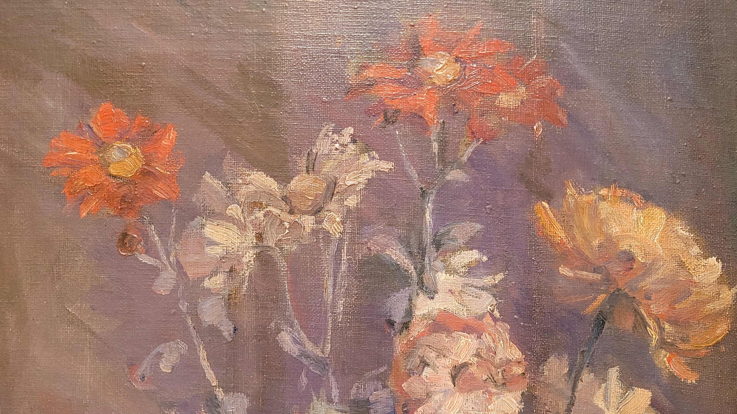 Объект продажи - красивые старые нефтяные изображения «цветы в вазе».
