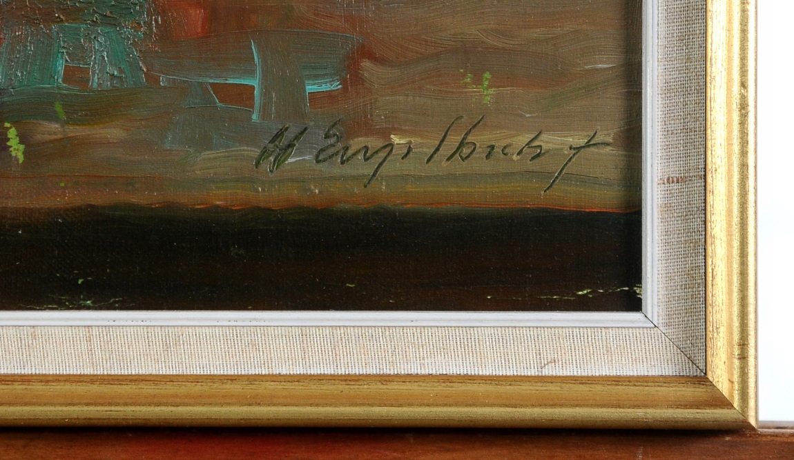 - В правом нижнем углу есть подпись художника.