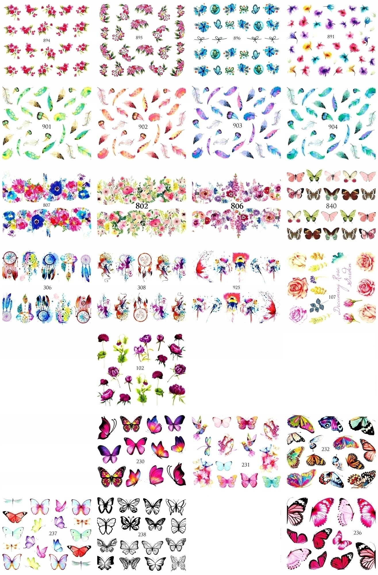 водяные наклейки для гелевых, акриловых, натуральных и гибридных ногтей