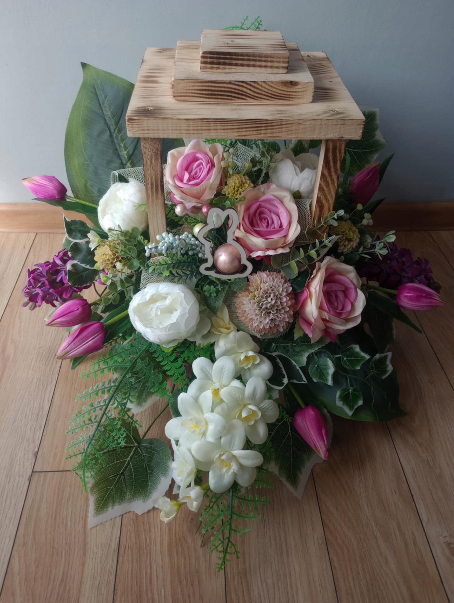Красивый фонарь для могилы из искусственных цветов, композиция для диска с возможностью выбора посвящения бабушке/дедушке/маме/падам/родителям/бабушкам/мы помним/Сон/дочь/Zając. Мы сами делаем свои композиции, благодаря тому, что тростники уникальны, и они выглядят еще красивее вживую :)