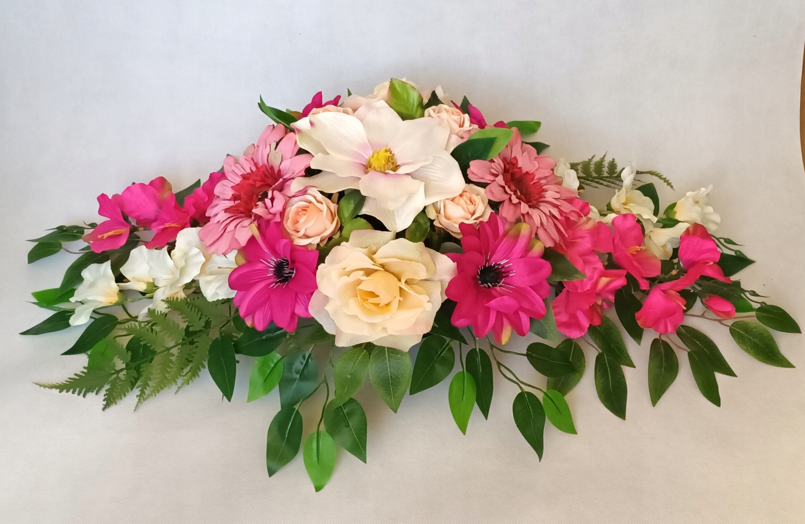 Цветочная композиция выполнена из качественных искусственных цветов.