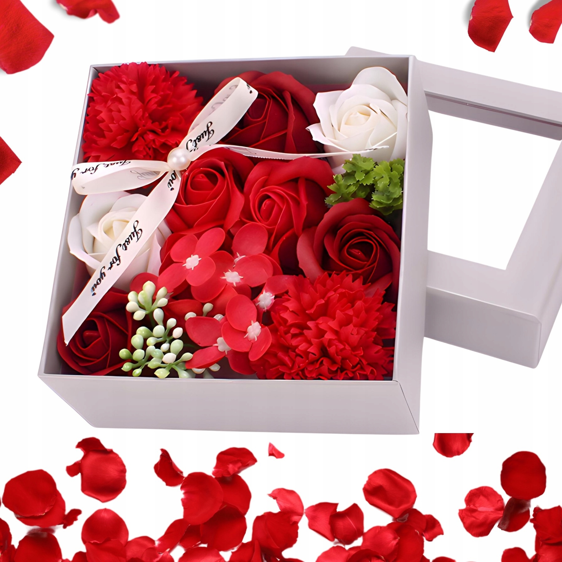- Цветочная коробка с красными мыльными розами - идеальный подарок на День святого Валентина, Женский день, День матери, юбилей или день рождения. Элегантная упаковка делает подарок восхитительным на первый взгляд и не требует дополнительной упаковки.
