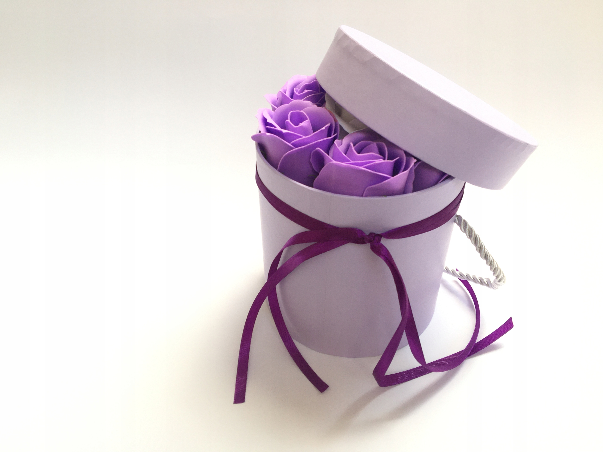 Коробка FLOWER BOX с ароматными МЫЛЬНЫМИ цветами НА ПОДАРОК - ЛАВАНДОВЫЕ РОЗЫ в коробке