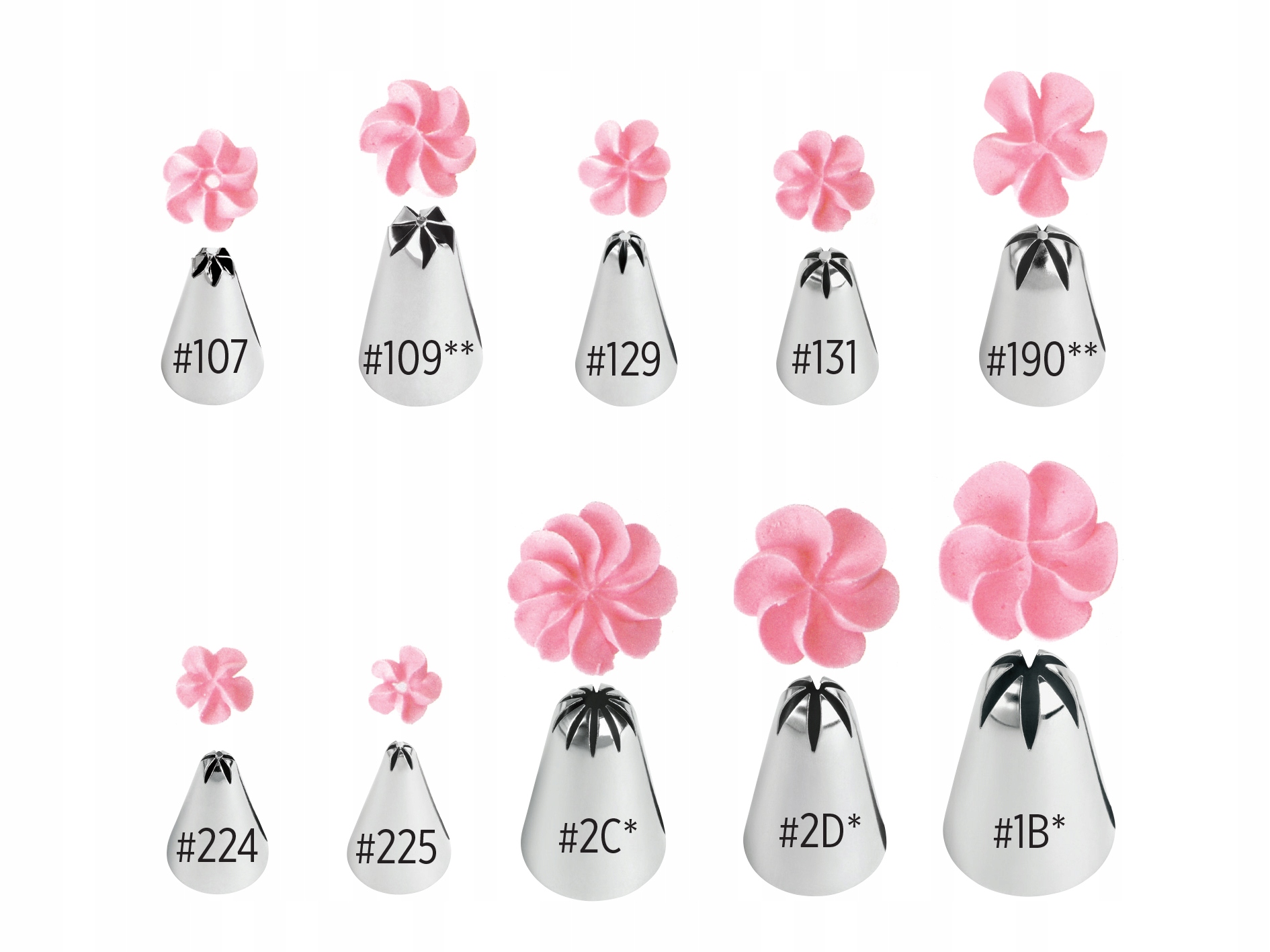 Совет по высококачественному украшению торта в форме цветка 1B Wilton. Идеально подходит для создания украшений в форме цветов на кексах, тортах или тортах. Он также отлично подходит для выдавливания безе и печенья. Подходит к любому кондитерскому мешку.