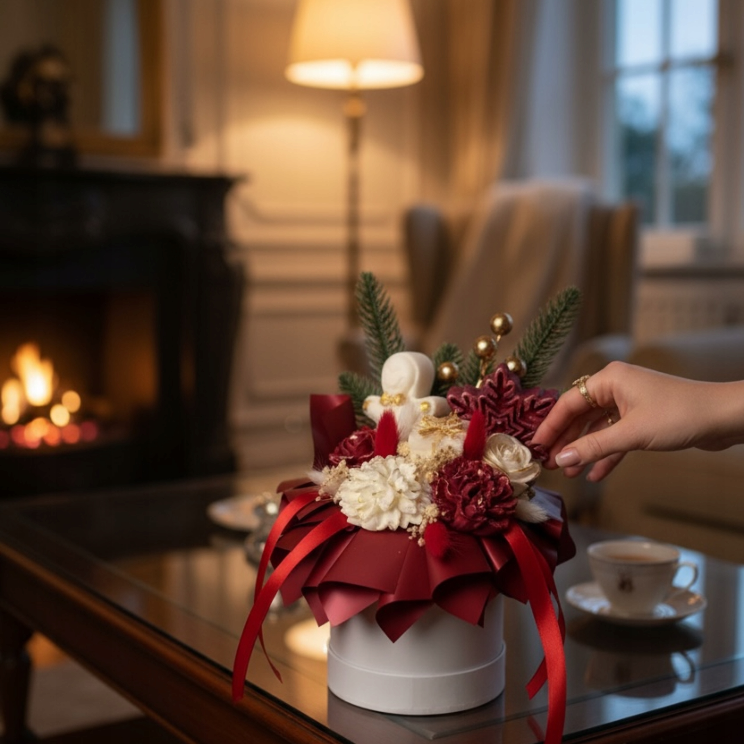 ◉ Тип: Рождественский букет с натуральными свечами в коробке