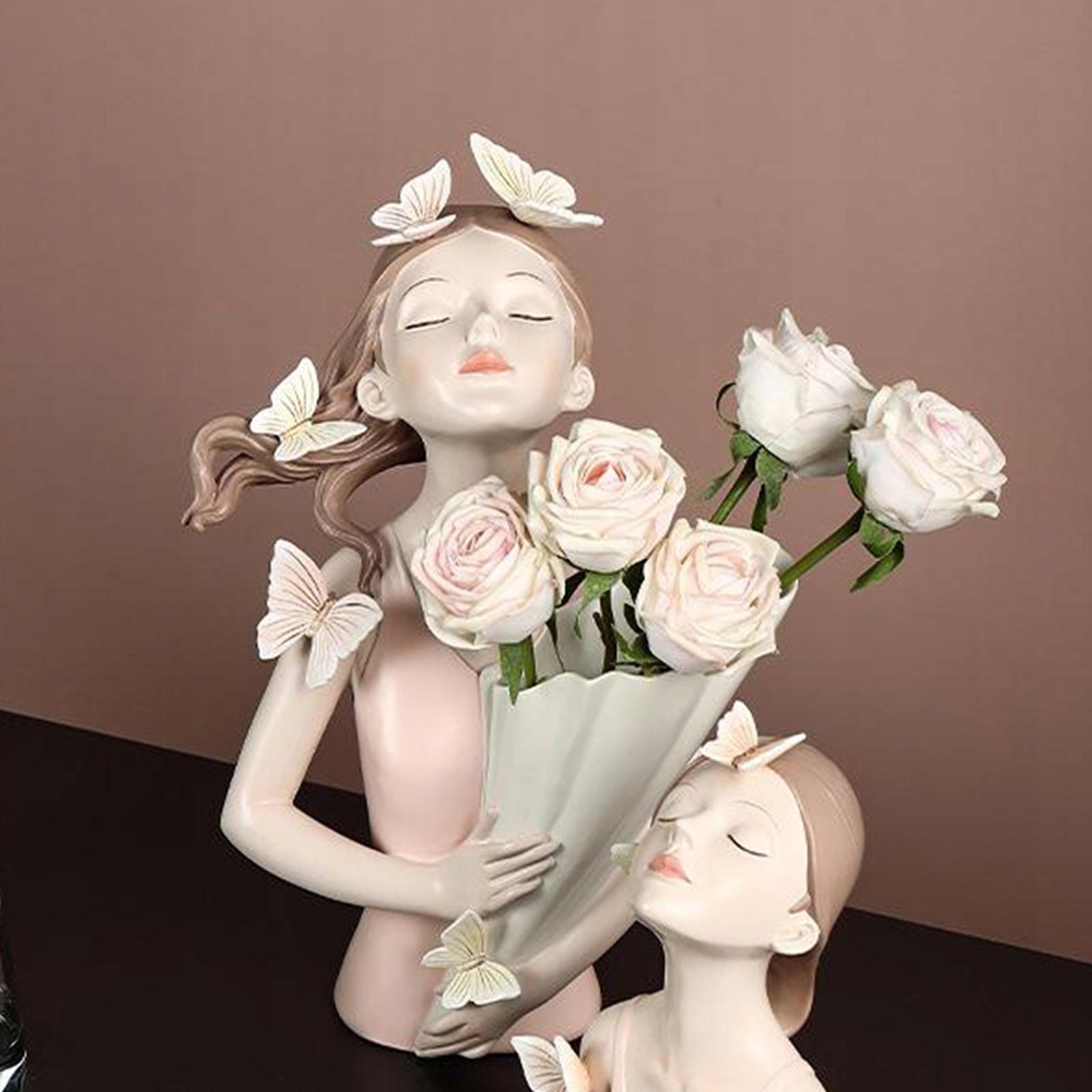 Цветочные горшки, цветочный горшок для скульптуры девушки, цветочный горшок из смолы, креативный розовый