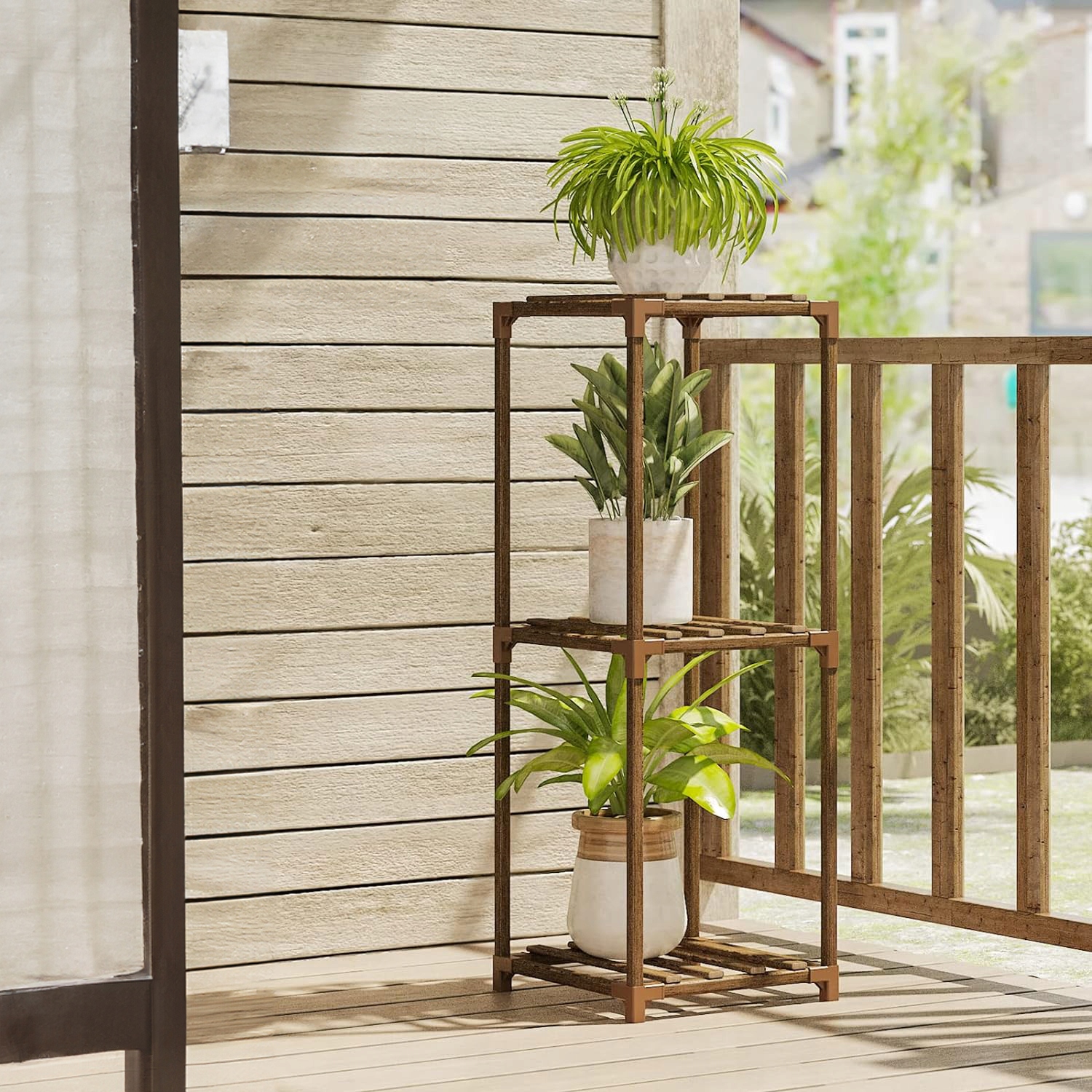 Стенд поднимает растения с земли, что обеспечивает им правильное количество солнечного света и способствует лучшему росту.