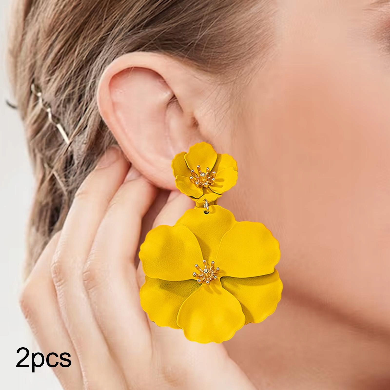 Цветочные висячие серьги из цинкового сплава, многослойные цветочные серьги, романтический желтый цвет