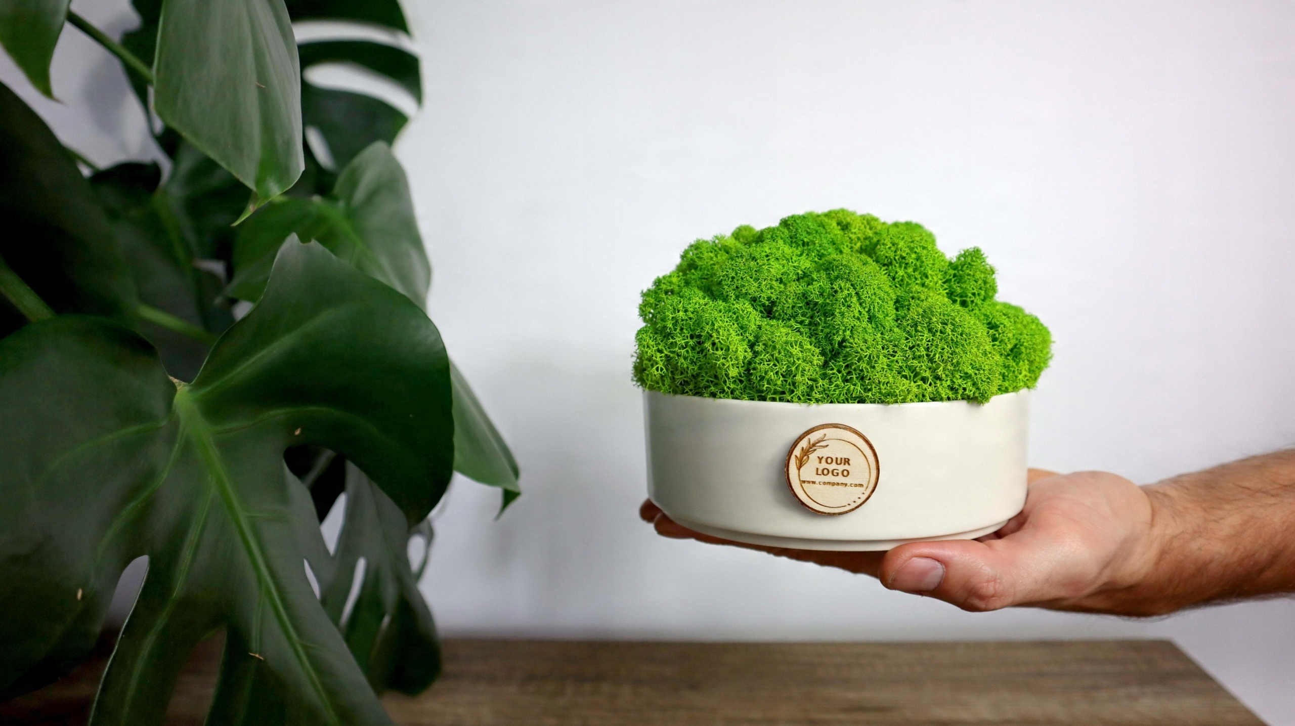 Красивые минималистичные чаши, которые вписываются в любой интерьер благодаря вечный цвет горшка и зелень мха. На плюшевого мишку можно разместить логотип вашей компании или короткий текст. Такое украшение также будет хорошо смотреться в вашем интерьере или в качестве подарка близким. Помните, что вы можете персонализировать их! Доступная цена за подарок премиум-класса — идеальное сочетание.