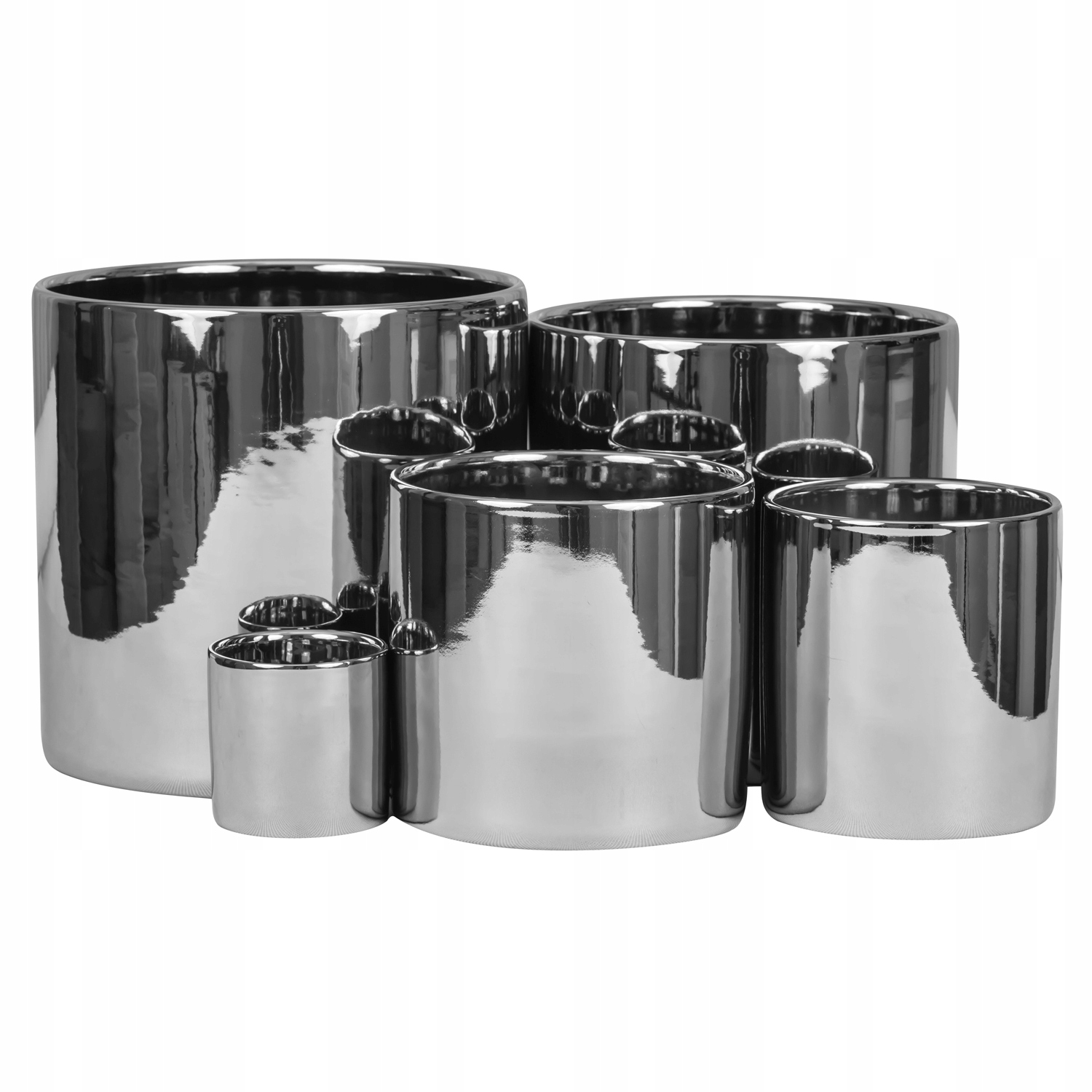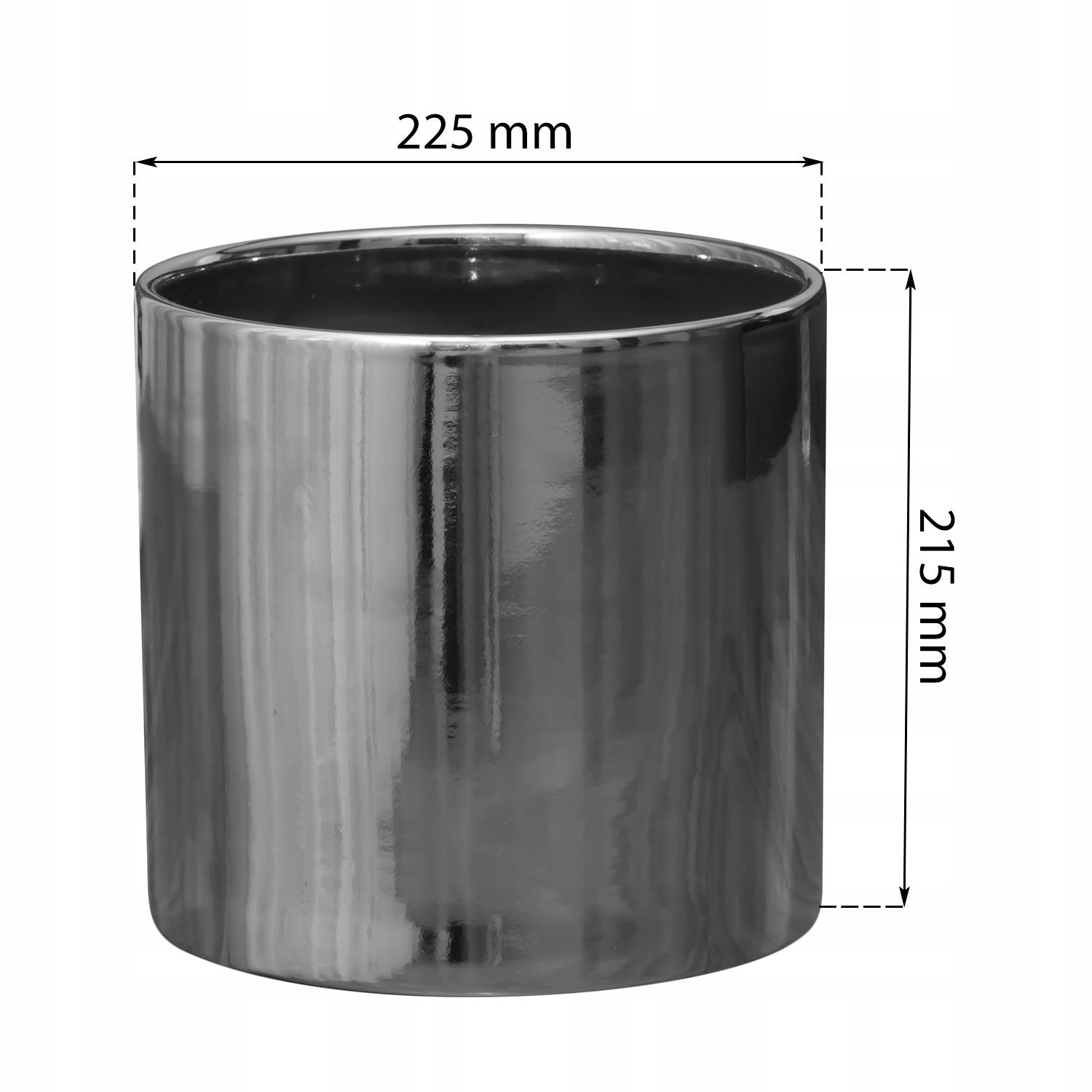 Цветочный горшок, керамическая крышка, цилиндр 23х22 см, Серебро
