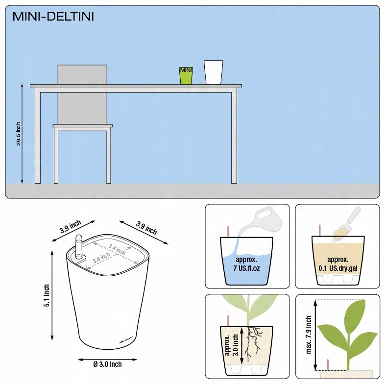 Мини Дельтини — младшая и меньшая сестра горшка Лечуза Дельтини. Это отличный выбор для небольших растений, вместе с которыми он создает изящный, красочный декоративный акцент. Эти небольшие горшки отличаются чрезвычайно оригинальными пастельными тонами, редко встречающимися среди пластиковых горшков.