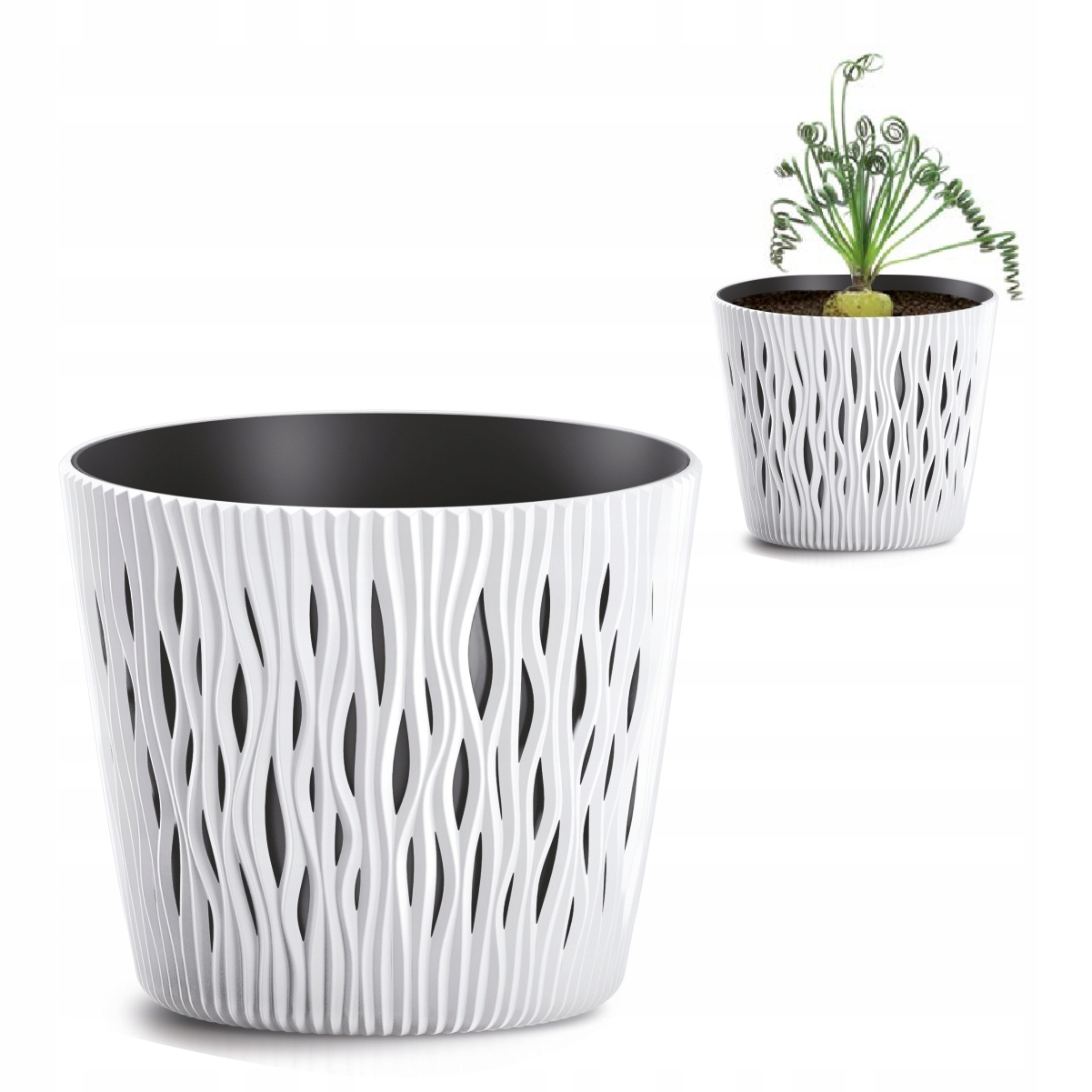Цветочный горшок SANDY ROUND со вставкой DSR130, БЕЛЫЙ