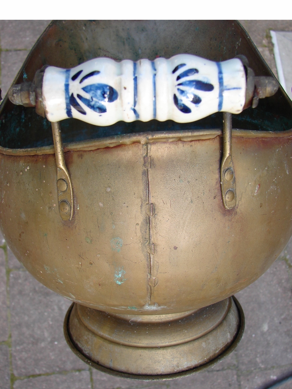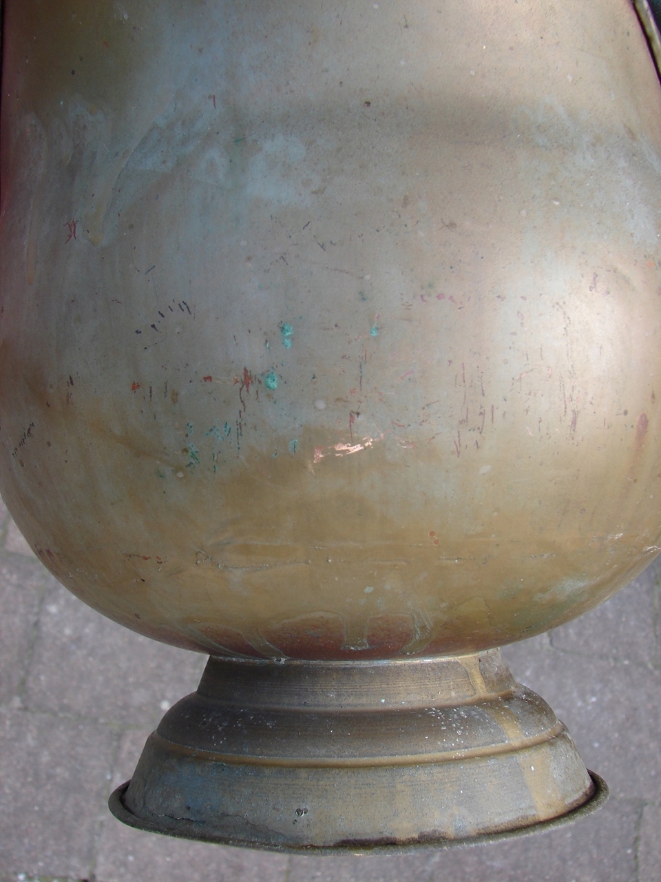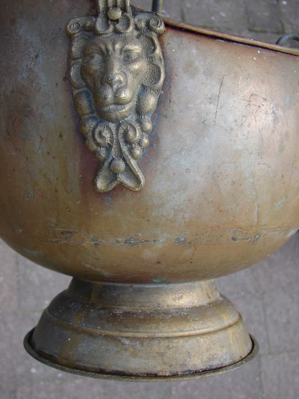 Изделие с видимыми следами патины и естественного износа, включая изменения цвета, характерные для старых латунных изделий.