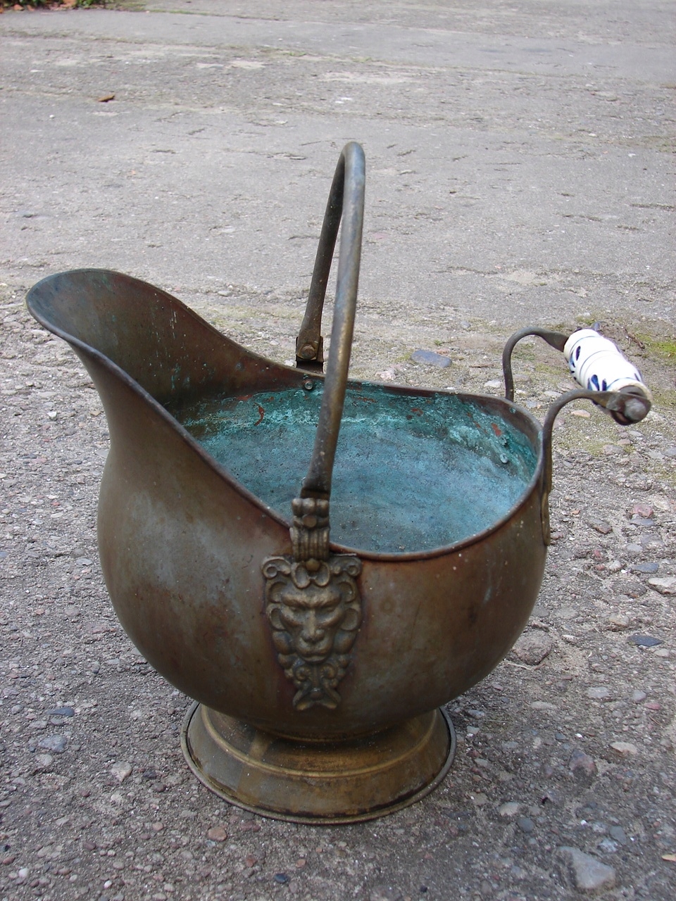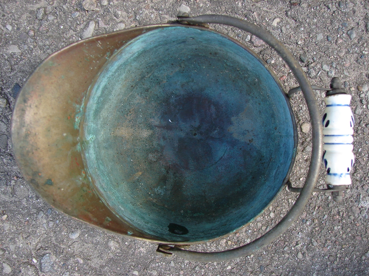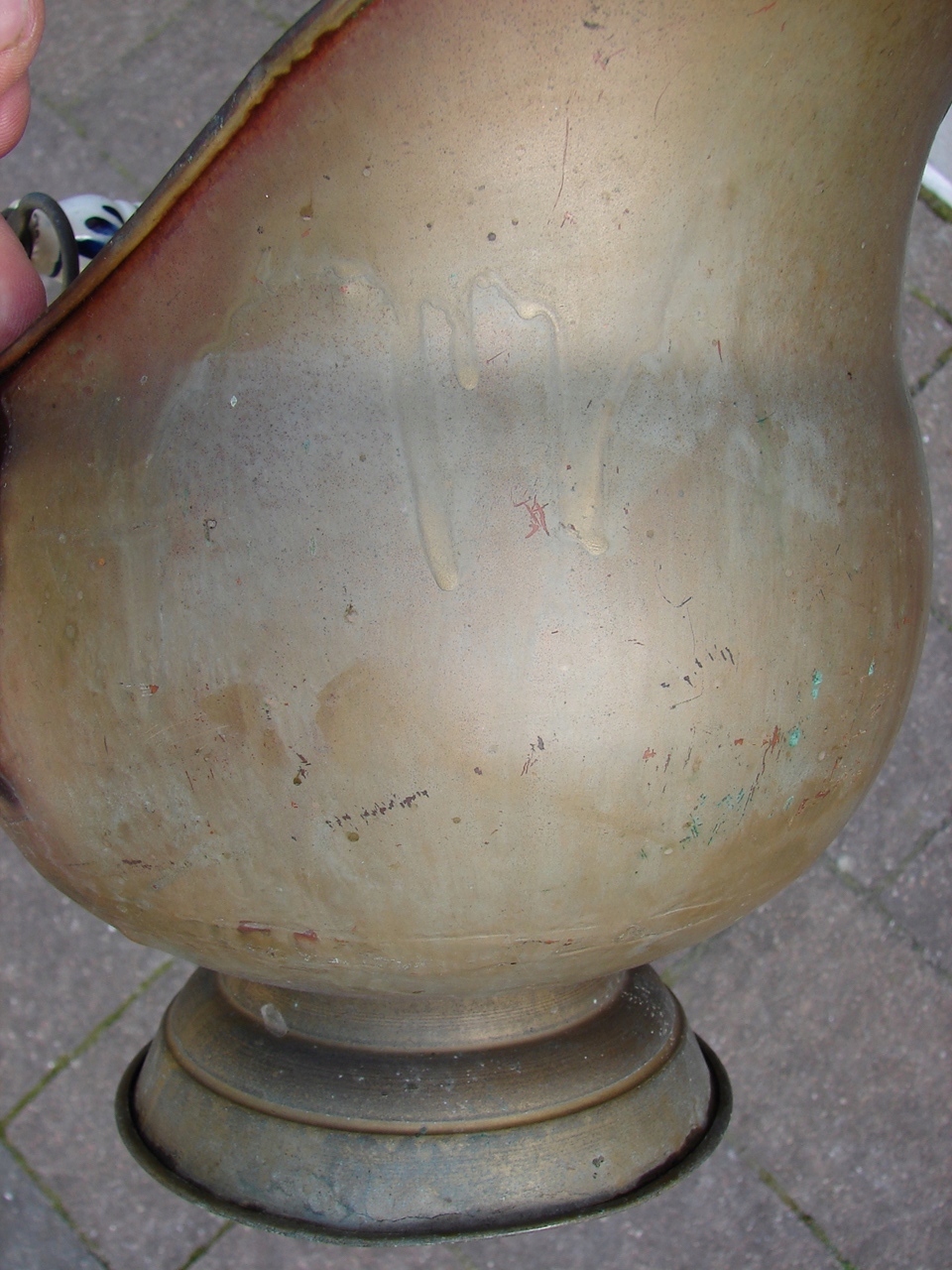 Изделие с видимыми следами патины и естественного износа, включая изменения цвета, характерные для старых латунных изделий.
