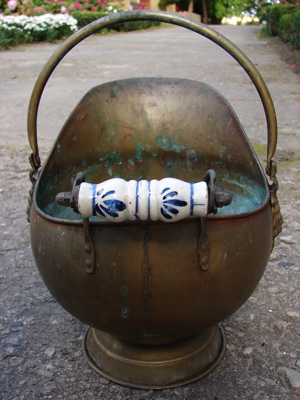 Горшок карбоновый, крышка для цветов, декоративная латунь, задняя ручка керамическая.