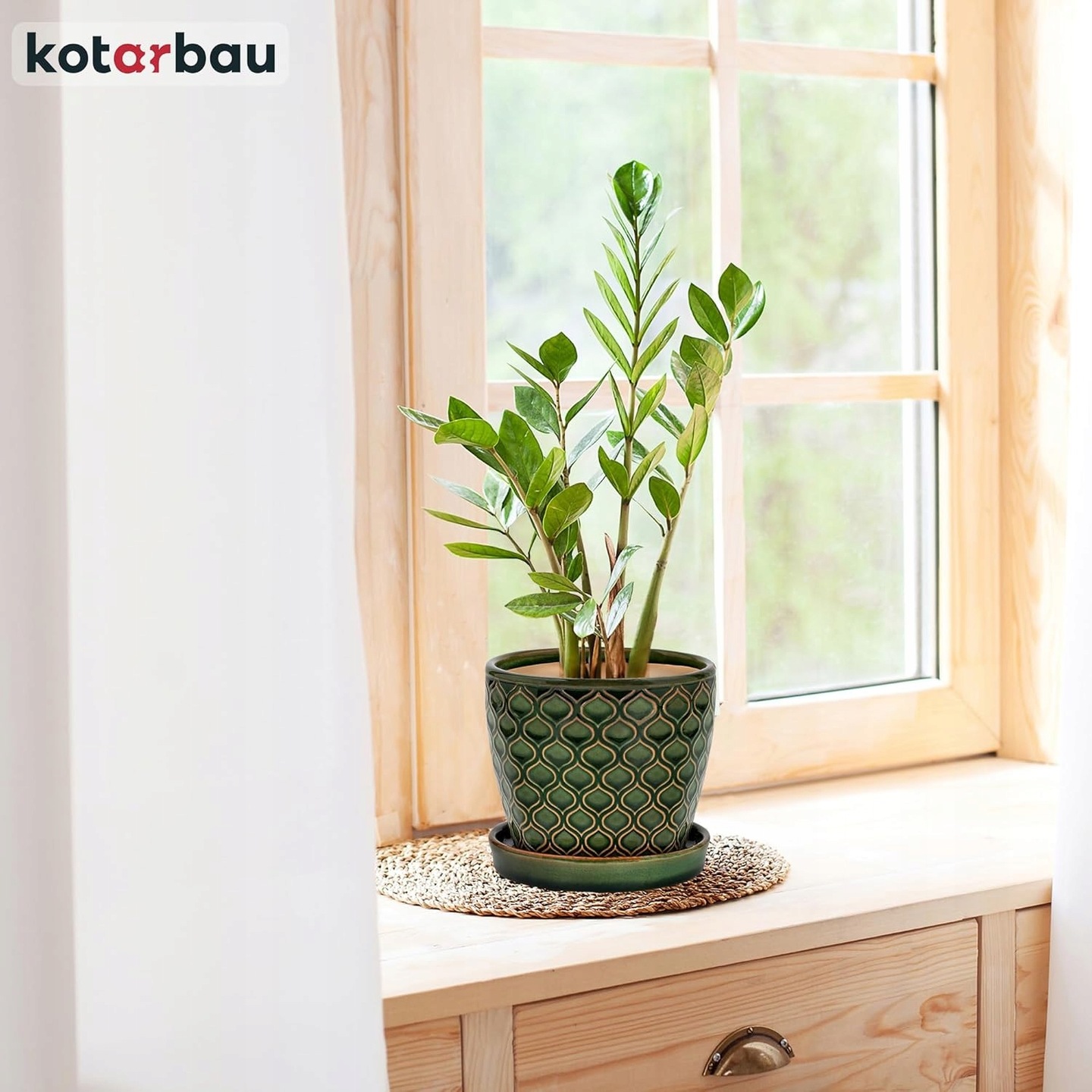 Цветочный горшок изготовлен вручную из высококачественной керамики. Изготовлен из прочного и прочного материала, устойчив к повреждениям. Цветочный горшок, украшенный необычным чешуйчатым узором, выполнен с большой точностью и привлечет внимание каждого гостя. Это функциональное и эстетичное решение для вашего дома. В комплекте с горшком идет подставка. На дне горшка имеется дренажное отверстие.