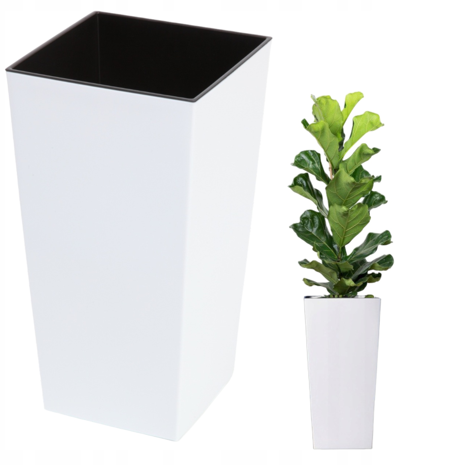 ЦВЕТОЧНЫЙ ВАЗОН СО ВСТАВКОЙ, БЕЛЫЙ ГЛЯНЦЕВЫЙ, КВАДРАТНЫЙ ПЛАСТИК, ВЫСОТА 24см
