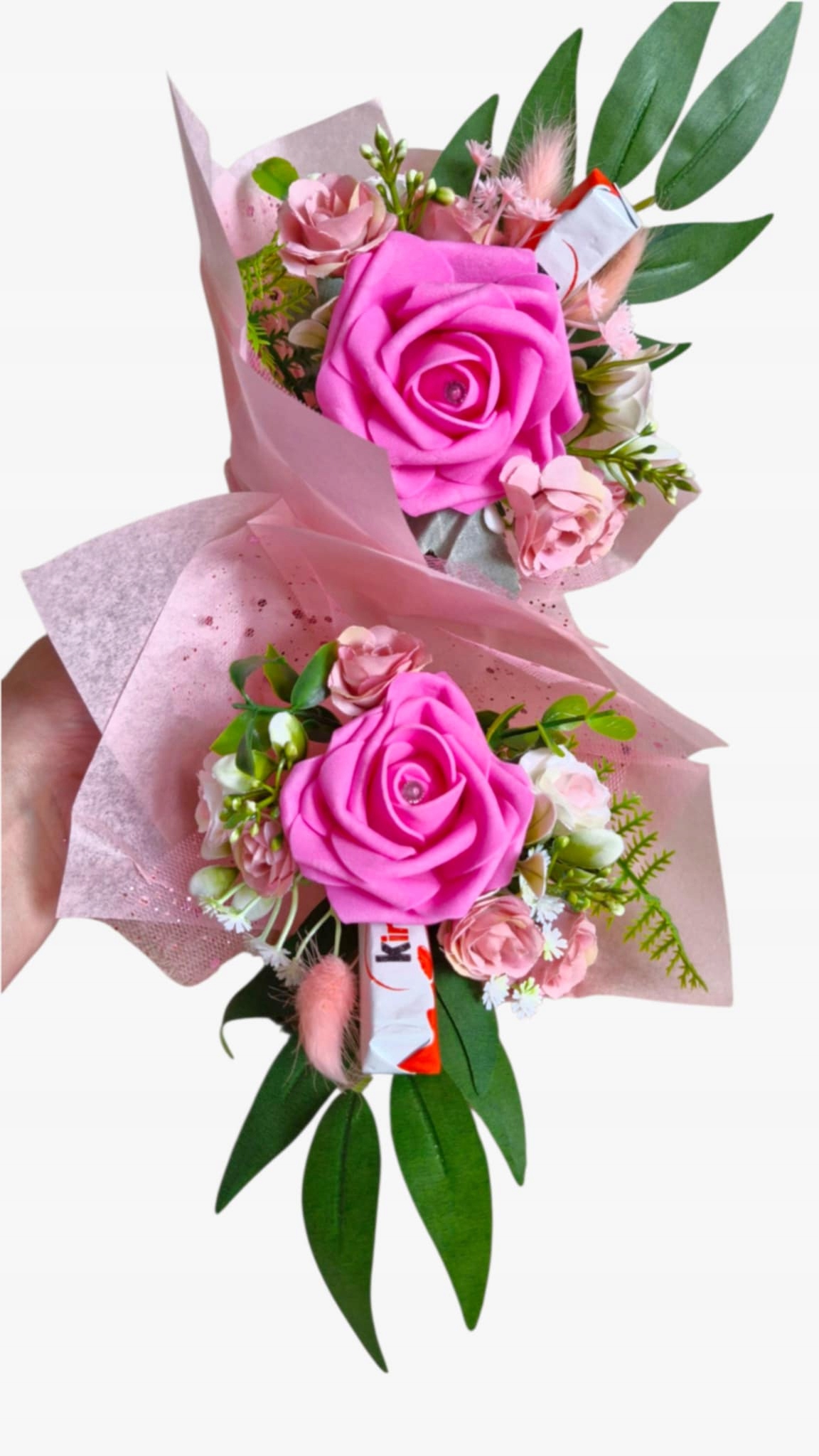 выглядят на фотографии, то есть розовая роза с бриллиантом, окруженная маленькими цветами и с помощью добра. Целое в тонкой папиросной бумаге.
