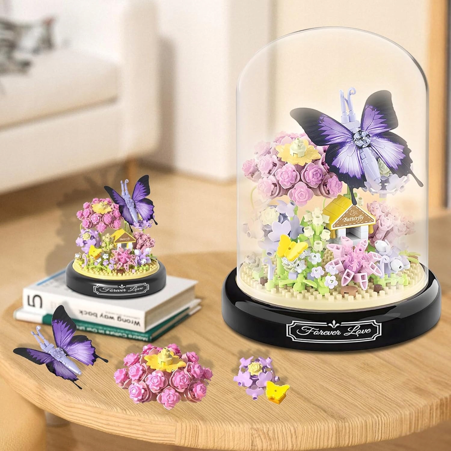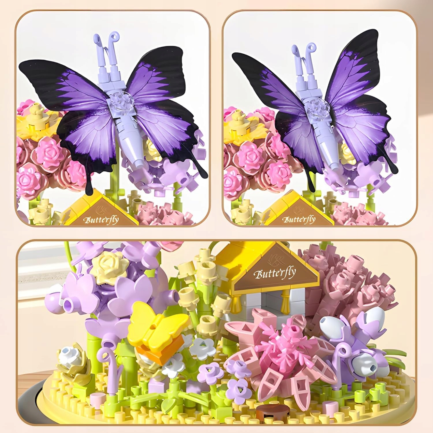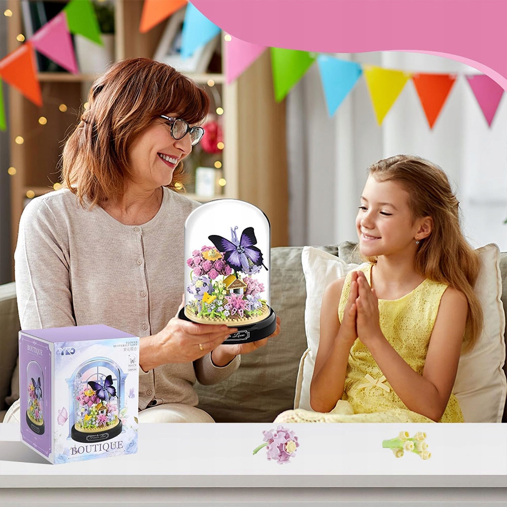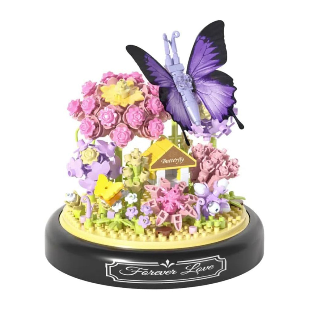 НАБОР ЦВЕТОЧНЫХ СТРОИТЕЛЬНЫХ БЛОКОВ ФИОЛЕТОВАЯ БАБОЧКА С ПРОЗРАЧНОЙ КРЫШКОЙ