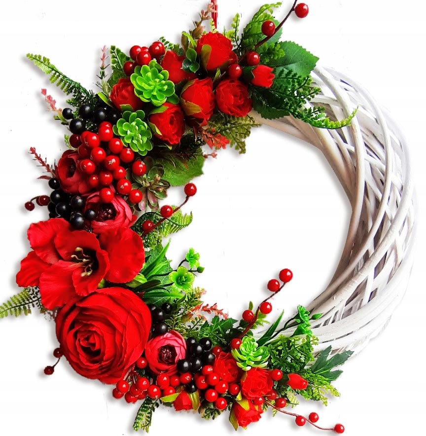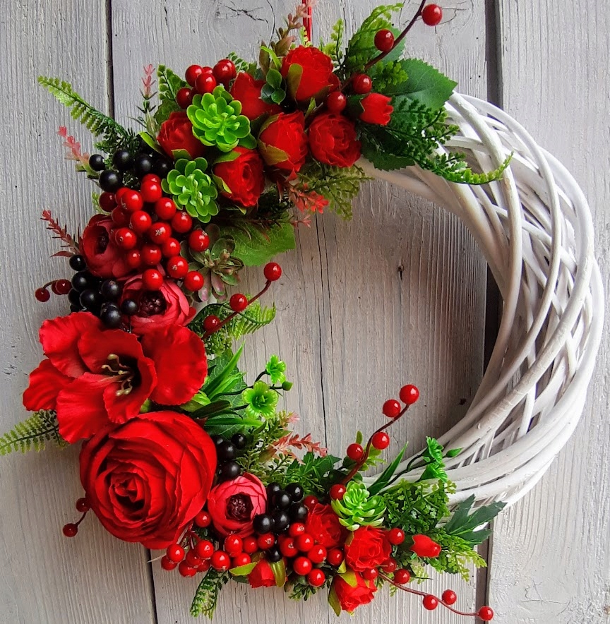 ДЕКОРАТИВНЫЙ ЦВЕТОЧНЫЙ ВЕНОК В КРАСНЫХ ЦВЕТАХ. КРАСИВЫЕ ЦВЕТА ПРИНЕСУТ НЕМНОГО ПОЗИТИВНОЙ ЭНЕРГИИ В ВАШ ДОМ