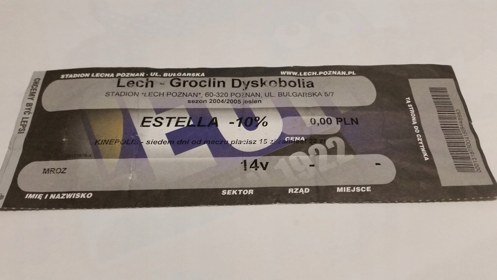 Билет Лех Познань - Гроклин Гродзиск 2004/2005