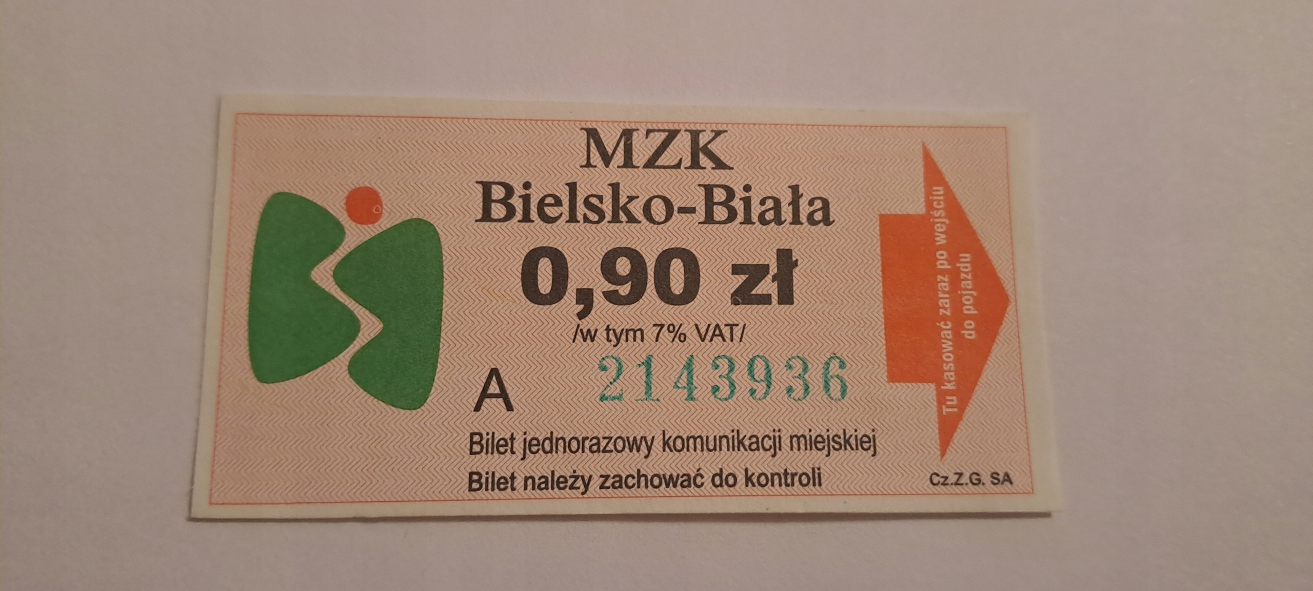 MZK Bielsko-Biała Ticket PLN 0,90