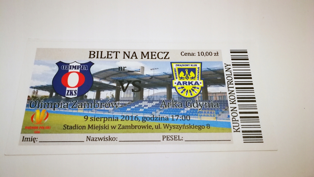 билет ОЛИМПИЯ Замбрув - АРКА Гдыня 08.09.2016