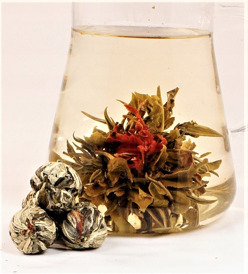 Отличное качество, скрученные вручную чаи на основе белого и зеленого листового чая. Белый и зеленый чай, цветущий из Китая, гарантирует превосходный, нежный вкус с легкой фруктовой или цветочной ноткой и необыкновенное эстетическое наслаждение. После заливки воды зеленые и серебристые листья медленно раскрываются, выпуская изнутри красивые композиции из 1-3 цветков. Настой имеет светло-желтый цвет и превосходный, очень тонкий вкус с едва заметной травяной ноткой, а также обширные оздоровительные свойства. В упаковке 6 чайных шариков.
